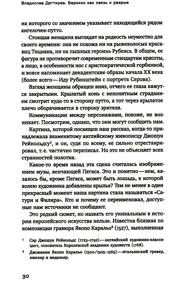 Серия: Очерки визуальности Школьное знание возводит термин «барокко» к образу «жемчужины неправильной формы». Этот образ связан с общим эмоциональным фоном эпохи: чувством внутреннего напряжения «между пламенной страстью и жестким, холодным контролем», стремящимся прорваться наружу. Почему Шекспир и Джон Донн говорили о разрушении всех связей, а их младший современник Атаназиус Кирхер рисовал взрывоопасный земной шар, пронизанный токами внутреннего огня? Как это соотносится с формулой самоощущения XX века? Как барокко и присущие ему сбитый масштаб предметов, механистичность, соединение несоединимого, вторжение фантастики в реальность соотносятся с современной культурой? В своей книге Владислав Дегтярев рассматривает культуру барокко как параллель и альтернативу футуристическому XX веку и показывает, как самые разные барочные интуиции остаются пугающе современными. Владислав Дегтярев — преподаватель РХГА, автор книги «Прошлое как область творчества» (М.: НЛО, 2018). |