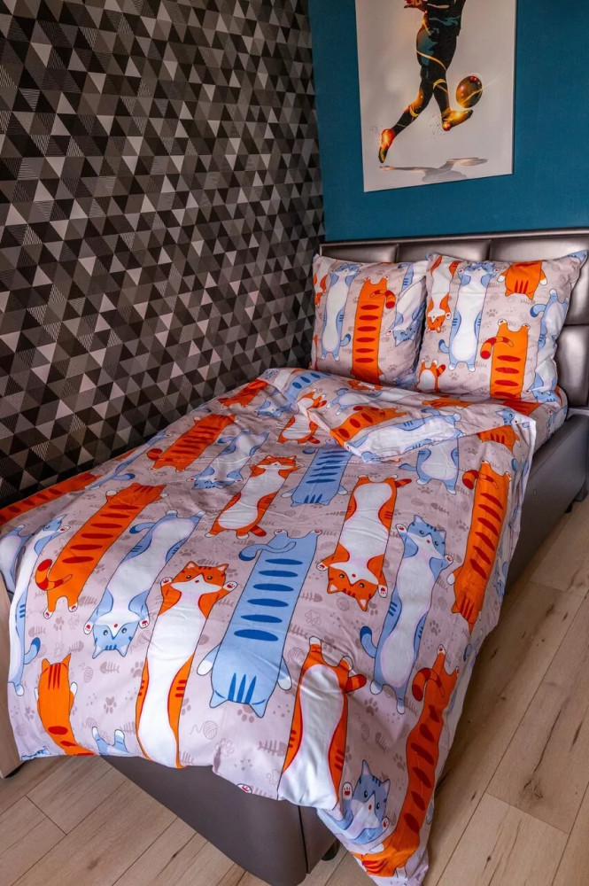 Комплект постельного белья 1,5-спальный с забавным принтом ,станет ярким акцентом в любой спальне. В составе 100% натуральный хлопок. Постельное белье включает пододеяльник, простыню и две наволочки размером 70×70 см, обеспечивая всё необходимое для полноценного отдыха. Вид ткани бязь. Бязь отличается своей природной прочностью и устойчивостью к частым стиркам, сохраняя яркость красок и форму даже после многочисленных циклов использования.