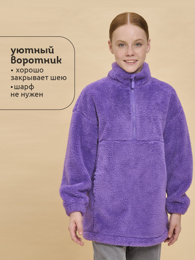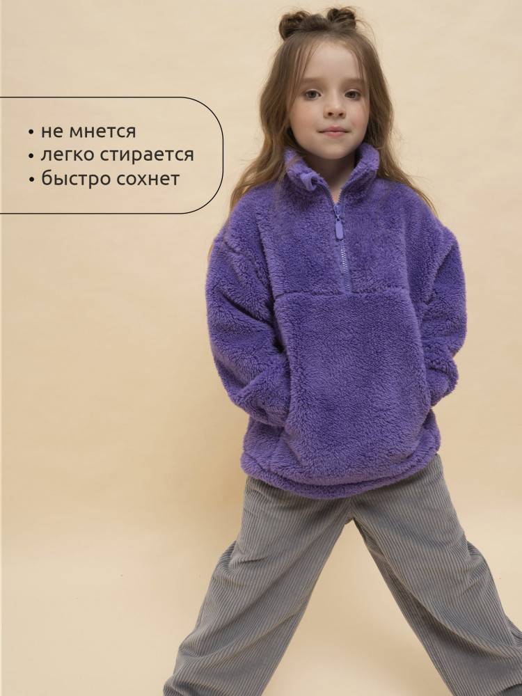 Толстовка детская для девочки. Трендовая трикотажная куртка увеличенного объёма из мягкого двустороннего материала берберфлис с фактурой «барашек» заменит ветровку в прохладную погоду и поможет создать модный суперкомфортный расслабленный образ. Толстовка флисовая застёгивается на короткую молнию — актуальный тренд. Модель выполнена из 100% полиэстера — она лёгкая, мягкая, износостойкая, просто стирается и быстро сохнет. Высокий объёмный воротник-стойка с защитным ограничителем и широкие манжеты защитят от холода и ветра. По низу куртка детская дополнена эластичным шнуром со стоперами для регулировки ширины. Толстовка для девочки на молнии дополнена большим и удобным карманом-кенгуру. Модель выполнена в универсальных оттенках, которые хорошо сочетаются с одеждой любых цветов. Толстовка легко комбинируется с различными брюками, джинсами. Уютная и стильная куртка для девочки неприхотлива в уходе.