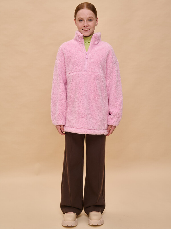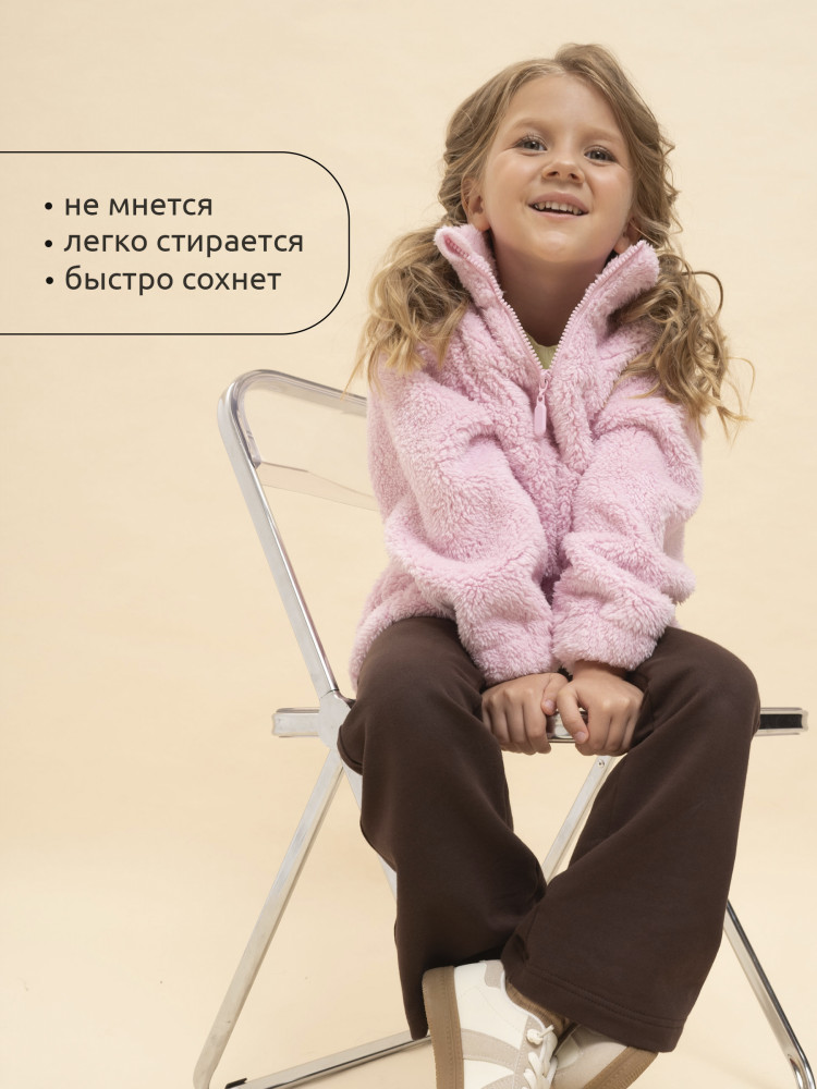 Толстовка детская для девочки. Трендовая трикотажная куртка увеличенного объёма из мягкого двустороннего материала берберфлис с фактурой «барашек» заменит ветровку в прохладную погоду и поможет создать модный суперкомфортный расслабленный образ. Толстовка флисовая застёгивается на короткую молнию — актуальный тренд. Модель выполнена из 100% полиэстера — она лёгкая, мягкая, износостойкая, просто стирается и быстро сохнет. Высокий объёмный воротник-стойка с защитным ограничителем и широкие манжеты защитят от холода и ветра. По низу куртка детская дополнена эластичным шнуром со стоперами для регулировки ширины. Толстовка для девочки на молнии дополнена большим и удобным карманом-кенгуру. Модель выполнена в универсальных оттенках, которые хорошо сочетаются с одеждой любых цветов. Толстовка легко комбинируется с различными брюками, джинсами. Уютная и стильная куртка для девочки неприхотлива в уходе.