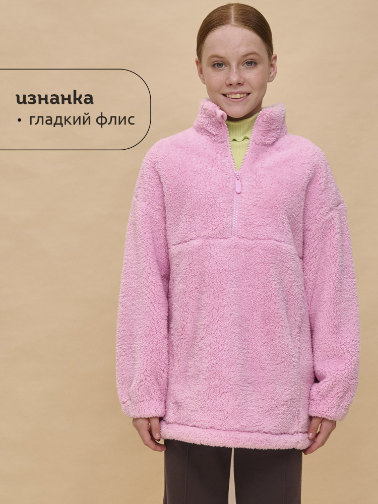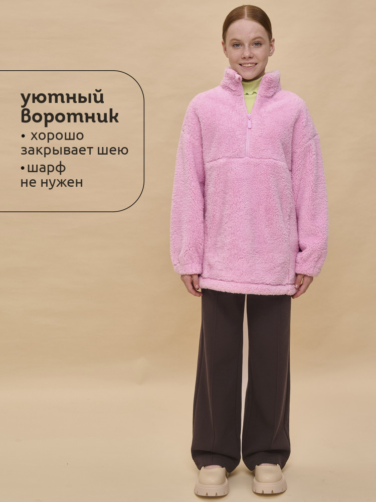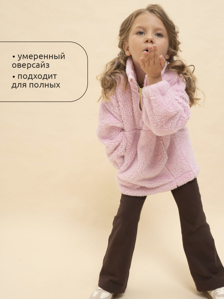 Толстовка детская для девочки. Трендовая трикотажная куртка увеличенного объёма из мягкого двустороннего материала бербер­флис с фактурой «барашек» заменит ветровку в прохладную погоду и поможет создать модный суперкомфортный расслабленный образ. Толстовка флисовая застёгивается на короткую молнию — актуальный тренд. Модель выполнена из 100% полиэстера — она лёгкая, мягкая, износостойкая, просто стирается и быстро сохнет. Высокий объёмный воротник-стойка с защитным ограничителем и широкие манжеты защитят от холода и ветра. По низу куртка детская дополнена эластичным шнуром со стоперами для регулировки ширины. Толстовка для девочки на молнии дополнена большим и удобным карманом-кенгуру. Модель выполнена в универсальных оттенках, которые хорошо сочетаются с одеждой любых цветов. Толстовка легко комбинируется с различными брюками, джинсами. Уютная и стильная куртка для девочки неприхотлива в уходе.