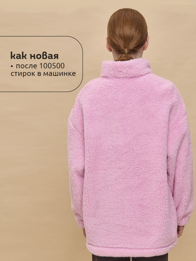 Толстовка детская для девочки. Трендовая трикотажная куртка увеличенного объёма из мягкого двустороннего материала берберфлис с фактурой «барашек» заменит ветровку в прохладную погоду и поможет создать модный суперкомфортный расслабленный образ. Толстовка флисовая застёгивается на короткую молнию — актуальный тренд. Модель выполнена из 100% полиэстера — она лёгкая, мягкая, износостойкая, просто стирается и быстро сохнет. Высокий объёмный воротник-стойка с защитным ограничителем и широкие манжеты защитят от холода и ветра. По низу куртка детская дополнена эластичным шнуром со стоперами для регулировки ширины. Толстовка для девочки на молнии дополнена большим и удобным карманом-кенгуру. Модель выполнена в универсальных оттенках, которые хорошо сочетаются с одеждой любых цветов. Толстовка легко комбинируется с различными брюками, джинсами. Уютная и стильная куртка для девочки неприхотлива в уходе.