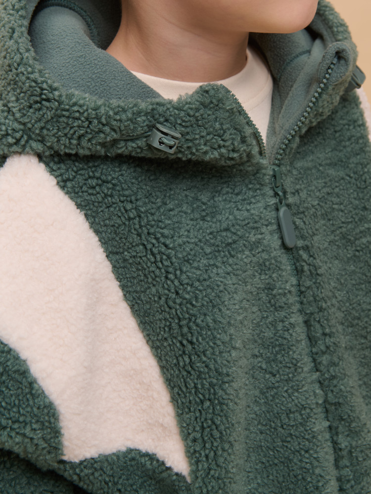 Детская худи зипка для мальчика. Трикотажная куртка свободного покроя со спущенным плечом из мягкого двустороннего материала берберфлис заменит ветровку в прохладную погоду. Толстовка флисовая застёгивается на классическую длинную молнию. Куртка детская выполнена из 100% полиэстера — она лёгкая, мягкая, износостойкая, просто стирается и быстро сохнет. Капюшон с высоким забралом и широкие манжеты с резинкой внутри защитят от холода и ветра. Капюшон с двумя швами, что обеспечивает анатомически правильную форму и комфортную посадку по голове. Посадка капюшона и ширина куртки по низу регулируются эластичными шнурами с пластиковыми фиксаторами. Толстовка для мальчика на молнии украшена контрастными вставками в области плеч. По бокам удобные карманы. Уютная и стильная куртка для мальчика неприхотлива в уходе.