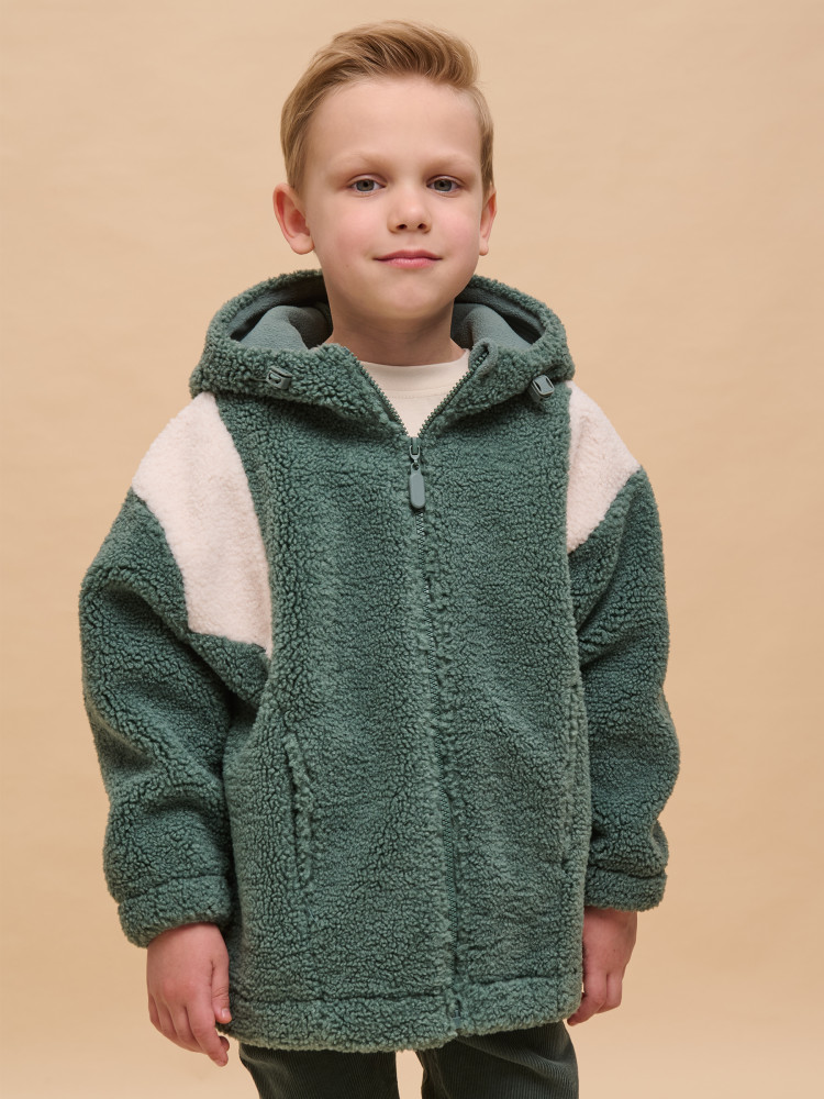 Детская худи зипка для мальчика. Трикотажная куртка свободного покроя со спущенным плечом из мягкого двустороннего материала берберфлис заменит ветровку в прохладную погоду. Толстовка флисовая застёгивается на классическую длинную молнию. Куртка детская выполнена из 100% полиэстера — она лёгкая, мягкая, износостойкая, просто стирается и быстро сохнет. Капюшон с высоким забралом и широкие манжеты с резинкой внутри защитят от холода и ветра. Капюшон с двумя швами, что обеспечивает анатомически правильную форму и комфортную посадку по голове. Посадка капюшона и ширина куртки по низу регулируются эластичными шнурами с пластиковыми фиксаторами. Толстовка для мальчика на молнии украшена контрастными вставками в области плеч. По бокам удобные карманы. Уютная и стильная куртка для мальчика неприхотлива в уходе.