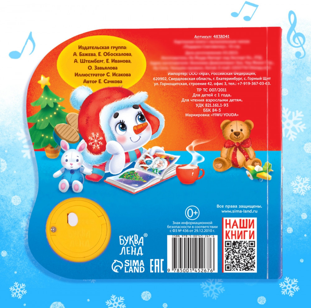 💳 Оплатить за товар можно при получении 🇰🇿 Есть бесплатная доставка по Казахстану от 1 дня 🎁 Копите бонусы с каждой покупки Серия: Новогодние книги Буква-Ленд Тематическая книга с музыкальным чипом «Подарок Снеговичку» приобщит малышей к чтению. Красочные картинки помогут развить воображение, образное мышление и эмоциональное восприятие. Чтобы песенка заиграла, нажмите кнопку. |