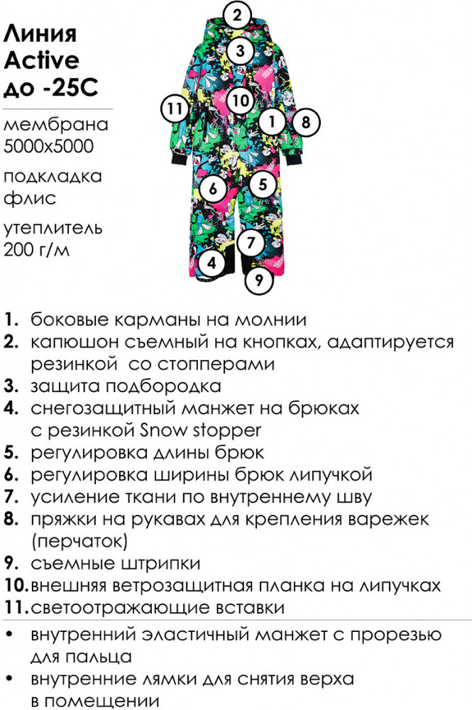 Зимний комбинезон для девочки подростка. Утепленный горнолыжный комбинезон — идеальный выбор для активного отдыха на свежем воздухе в зимний период. Инновационный утеплитель и флисовая подкладка сохраняют тепло морозную погоду. Мембранный материал делает этот яркий и модный комбинезон непромокаемым: мембрана не пропускает влагу снаружи, но выводит её изнутри, что крайне важно во время подвижных игр и занятий спортом. Легкий, теплый и удобный, комбинезон идеально подходит для спорта, лыж, сноуборда и игр на свежем воздухе в холодный период года: зима, поздняя осень и ранняя весна. Пожалуйста, обратите внимание, что указанный температурный режим является приблизительным и зависит от многих факторов, таких как возраст, физическое состояние, уровень активности ребенка и количество слоев одежды. Время, проведенное на открытом воздухе, и погодные условия, такие как холодный ветер, могут повлиять на тепловые характеристики изделия. Убедитесь, что защищены от холода голова, руки и ноги.