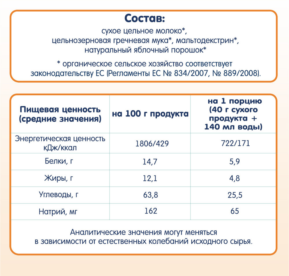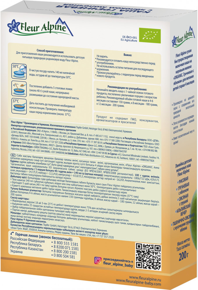 💳 Оплатить за товар можно при получении 🇰🇿 Есть бесплатная доставка по Казахстану от 1 дня 🎁 Копите бонусы с каждой покупки Цельное зерно, из которого изготовлена каша, содержит натуральные витамины, минералы и пищевые волокна. Бережная технология производства позволяет сохранить ценные нутриенты. Цельное молоко от коров, находящихся в свободном выпасе в Баварских Альпах, придает каше натуральную сладость, приятный молочный вкус и аромат, способствует длительному насыщению. Фруктовое послевкусие спелого яблока делает кашу особо аппетитной. |