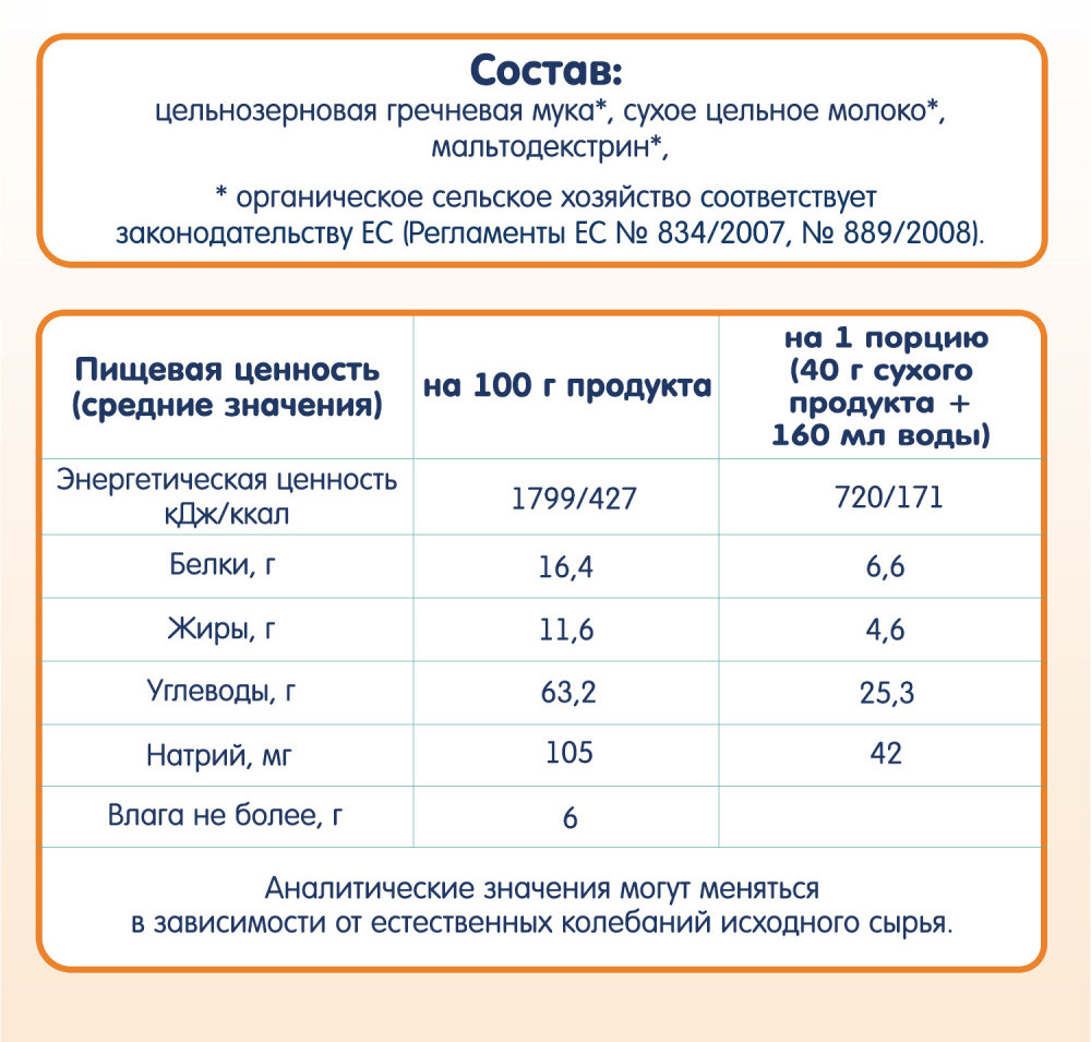 💳 Оплатить за товар можно при получении 🇰🇿 Есть бесплатная доставка по Казахстану от 1 дня 🎁 Копите бонусы с каждой покупки Каша обладает тонким послевкусием и ароматом гречки. Цельное зерно, из которого изготовлена каша, содержит натуральные витамины, минералы и пищевые волокна. Бережная технология производства позволяет сохранить ценные нутриенты. Цельное молоко от коров, находящихся в свободном выпасе в Баварских Альпах, придает каше натуральную сладость, приятный молочный вкус и аромат, способствует длительному насыщению. |