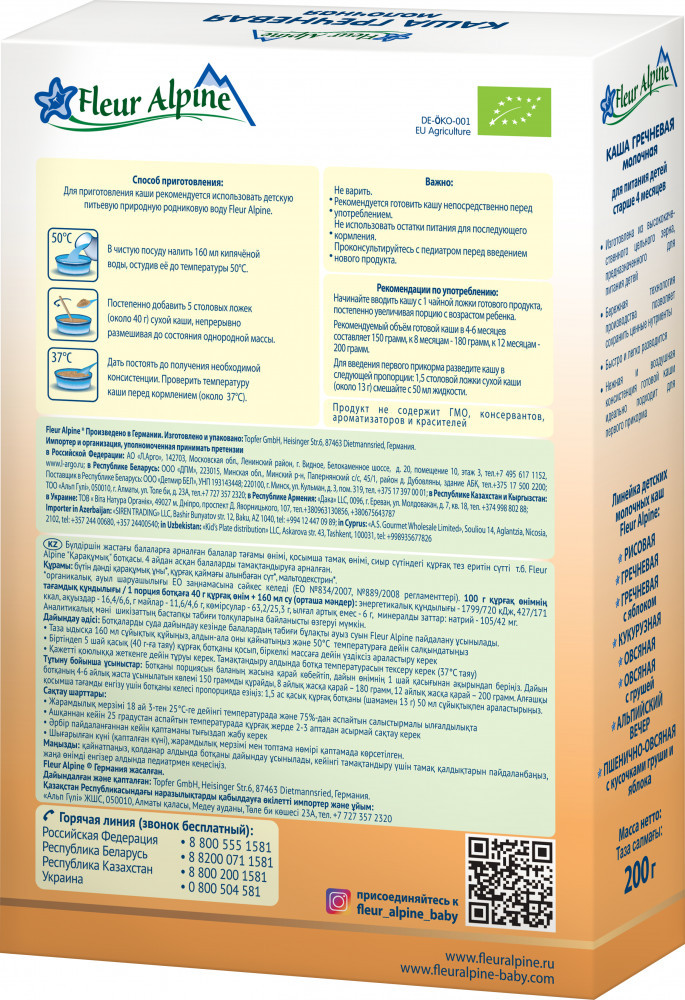 Fleur Alpine Каша молочная детская гречневая-20% +46