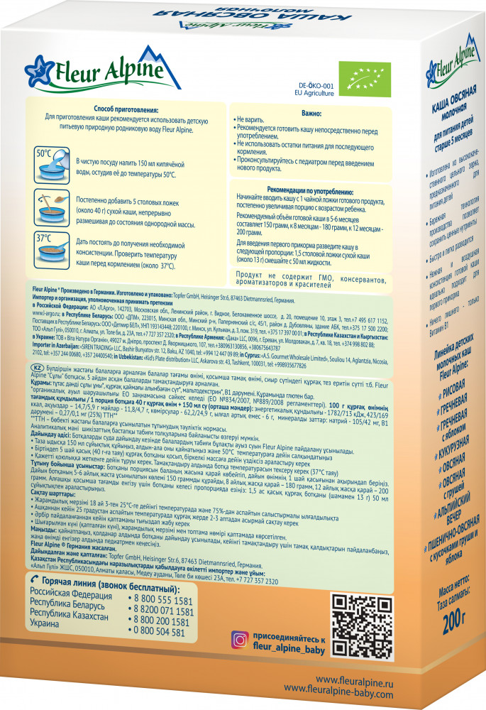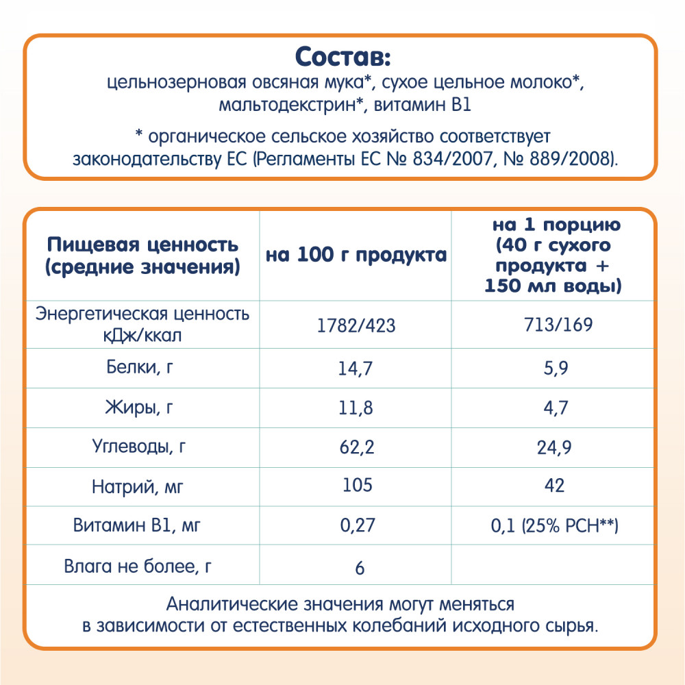💳 Оплатить за товар можно при получении 🇰🇿 Есть бесплатная доставка по Казахстану от 1 дня 🎁 Копите бонусы с каждой покупки Цельное молоко от коров, находящихся в свободном выпасе в Баварских Альпах, придает каше натуральную сладость, приятный молочный вкус и аромат, способствует длительному насыщению. |
