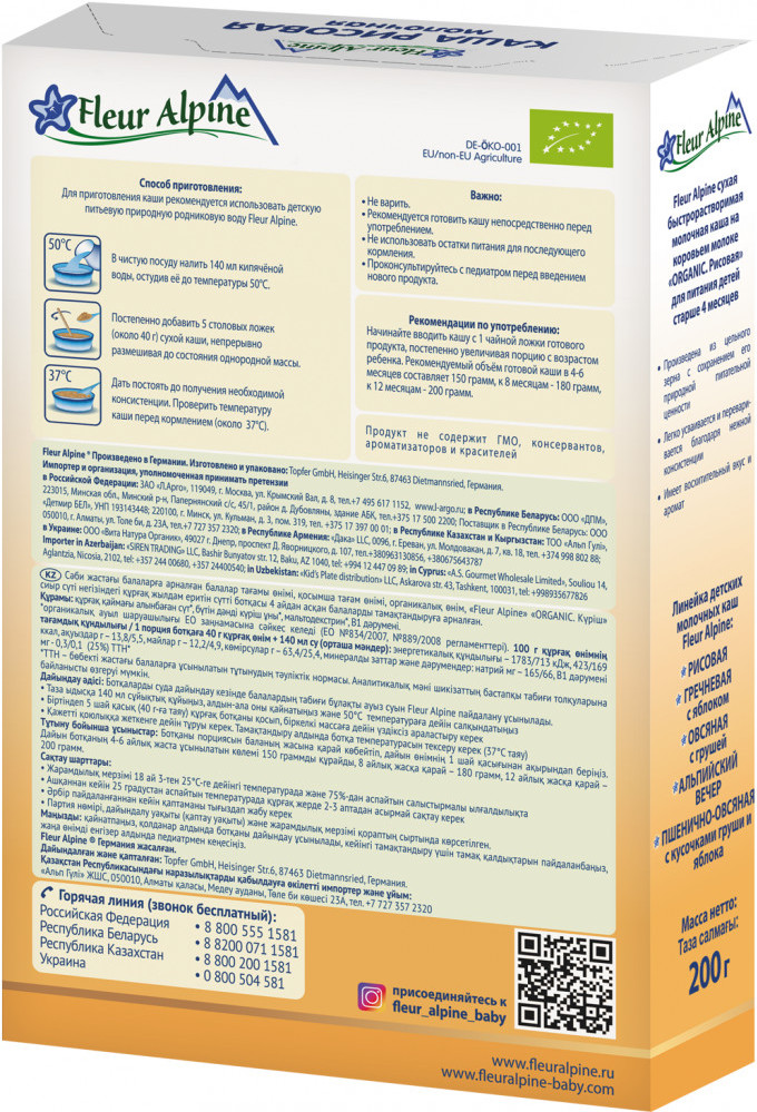 💳 Оплатить за товар можно при получении 🇰🇿 Есть бесплатная доставка по Казахстану от 1 дня 🎁 Копите бонусы с каждой покупки Цельное зерно, из которого изготовлена каша, содержит натуральные витамины, минералы и пищевые волокна. Бережная технология производства позволяет сохранить ценные нутриенты. |