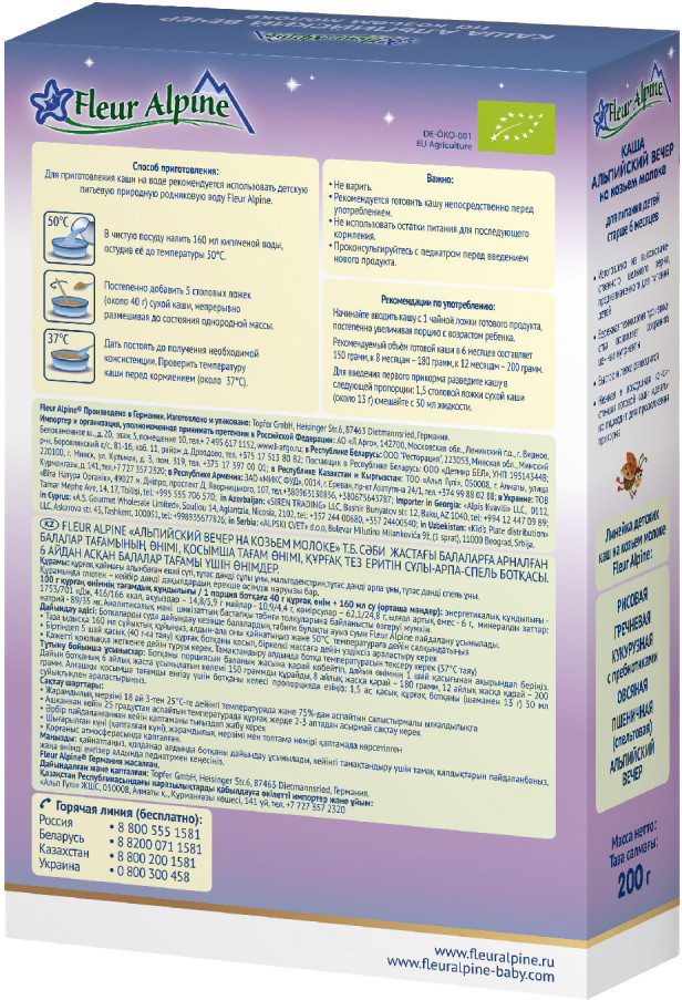 Fleur Alpine Каша детская на козьем молоке «Альпийский вечер»-30% +53