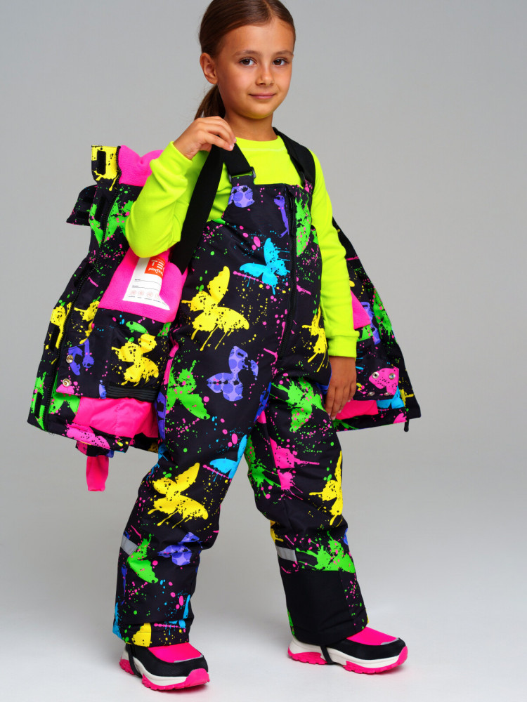 Зимний горнолыжный костюм для девочки. Утепленный горнолыжный комплект — идеальный выбор для активного отдыха на свежем воздухе в зимний период. Инновационный утеплитель и флисовая подкладка сохраняют тепло морозную погоду. Мембранный материал делает этот яркий и модный комбинезон непромокаемым: мембрана не пропускает влагу снаружи, но выводит её изнутри, что крайне важно во время подвижных игр и занятий спортом. Легкий, теплый и удобный, комплект идеально подходит для спорта, лыж, сноуборда и игр на свежем воздухе в холодный период года: зима, поздняя осень и ранняя весна.