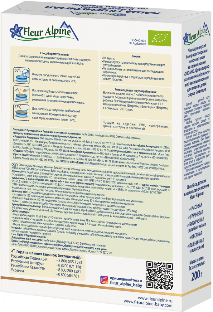 Fleur Alpine Каша пшеничная (спельтовая) на козьем молоке