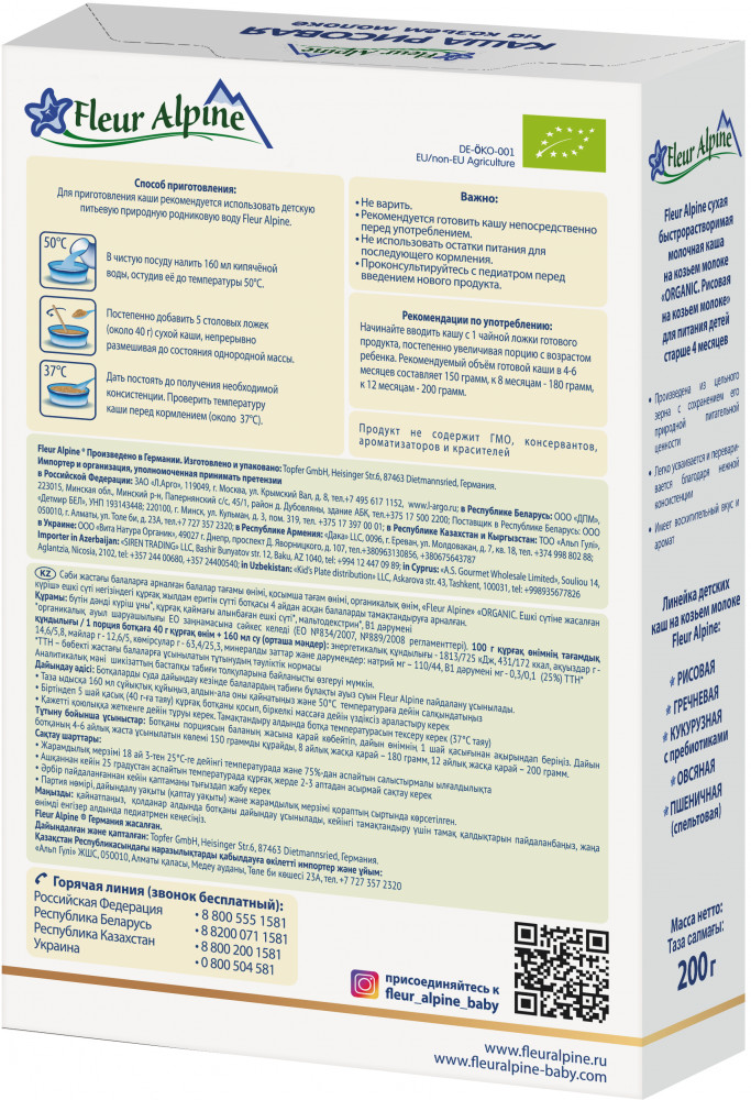 💳 Оплатить за товар можно при получении 🇰🇿 Есть бесплатная доставка по Казахстану от 1 дня 🎁 Копите бонусы с каждой покупки Цельное молоко альпийских козочек в составе придает каше натуральную сладость, нежный сливочный вкус и аромат, способствует длительному насыщению. Нежная, воздушная консистенция готовой каши в виде «сугробиков» напоминает снег, который ложится на поверхность небольшими пышными неровностями. |