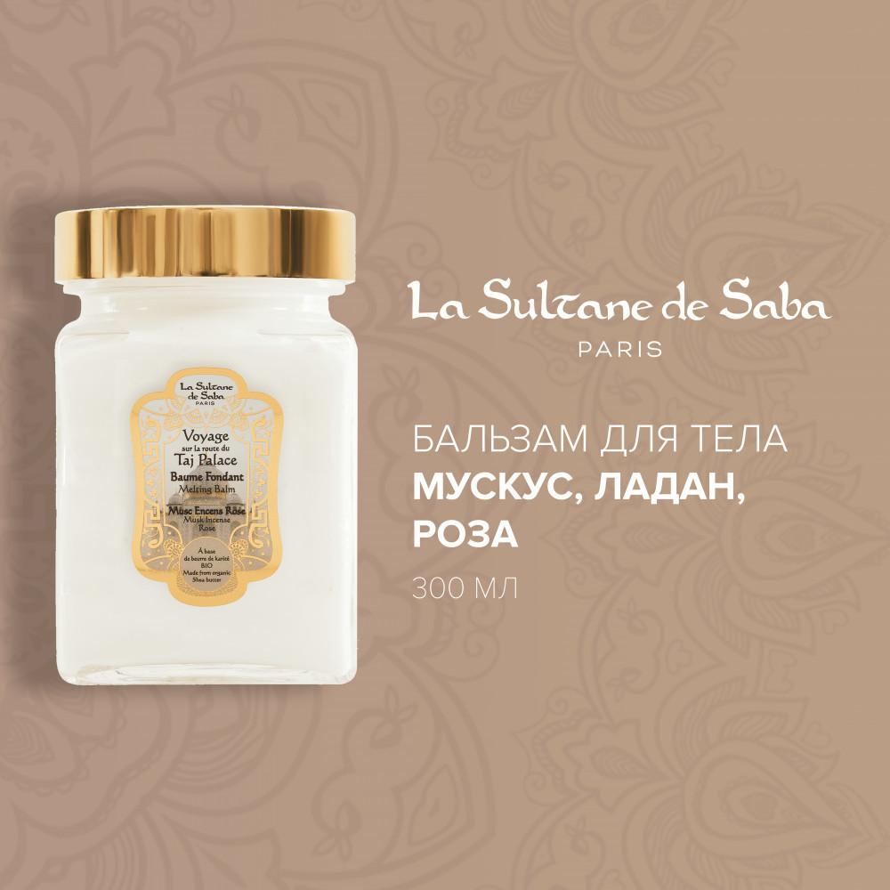 La sultane de saba Бальзам для тела «Melting Balm Taj Palace»В данный момент этот товар отсутствует в продаже. Возможно, у нас найдется аналогичный или похожий товар здесь. Тающий бальзам Фондант Тадж-Палас с ароматом мускуса, ладана и розы мгновенно исчезает на коже, великолепно питая, увлажняя ее и оставляя на теле столь любимую ценителями ароматную вуаль, присущую только продуктам La Sultane de Saba. |