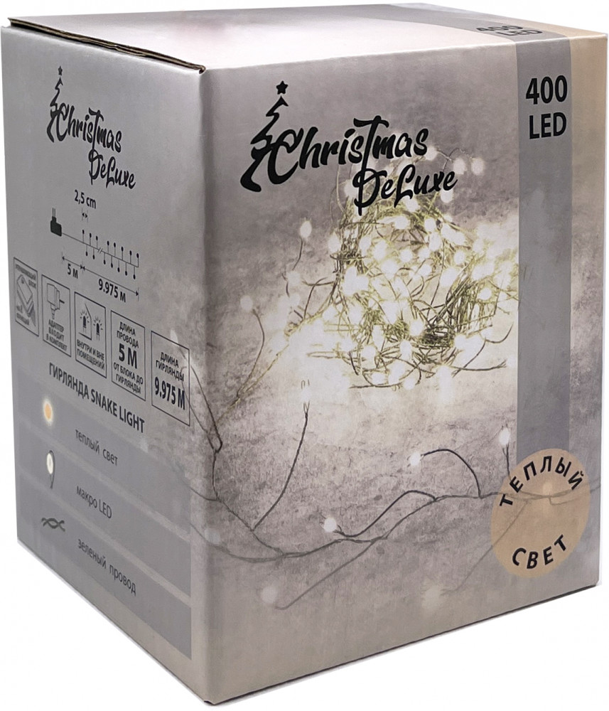 Christmas DeLuxe Гирлянда «Капли макро»В данный момент этот товар отсутствует в продаже. Возможно, у нас найдется аналогичный или похожий товар здесь. Оригинальное декоративное украшение, которое в сочетании с елкой довершит чудесное преобразование интерьера перед праздником. Гирляндой можно украсить окна или большую ель, окутав ее лампочками. В вечернее и ночное время гирлянда будет светить приятным светом, наполняя помещение праздничным мерцанием. Пусть ваш дом засияет праздничными огнями и заиграет яркими красками и тогда грядущий год непременно принесет в вашу семью счастье и радость! |