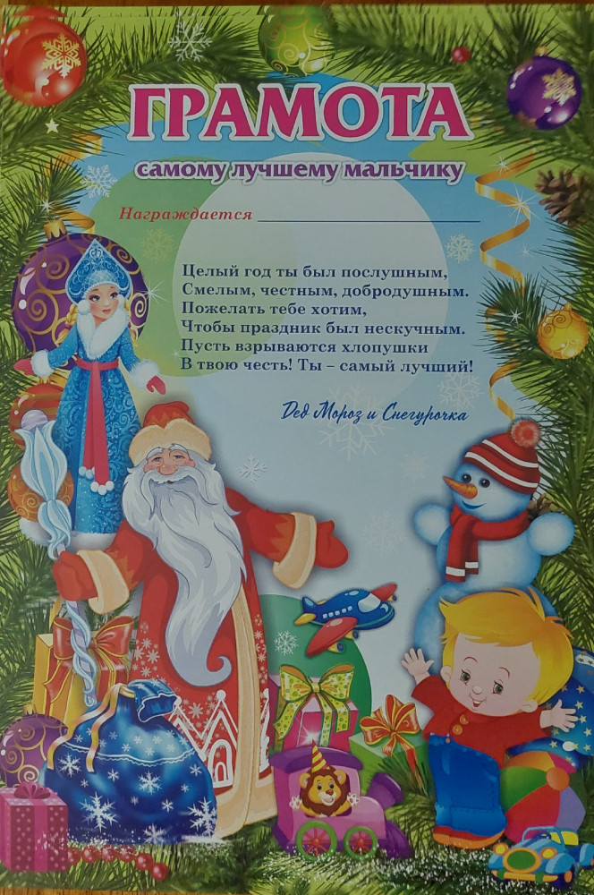 Отзывы «Грамота от Деда Мороза «Самому лучшему мальчику»»
