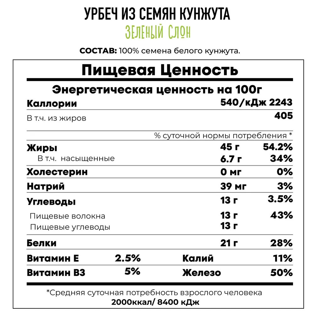Зеленый слон Урбеч из семян кунжута