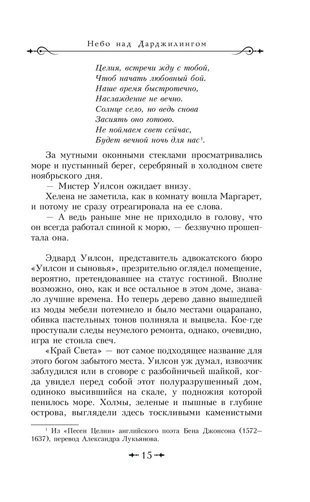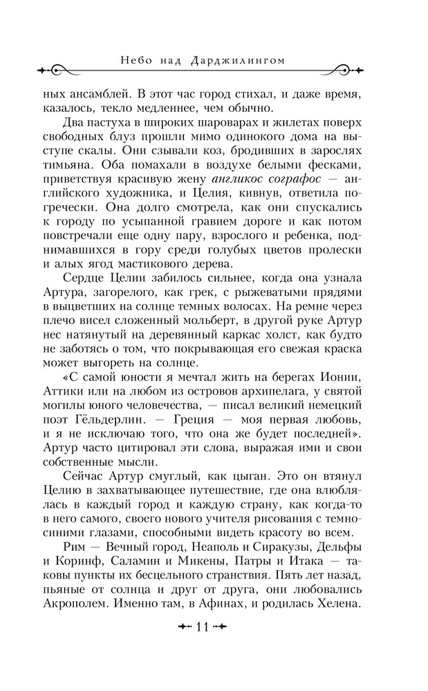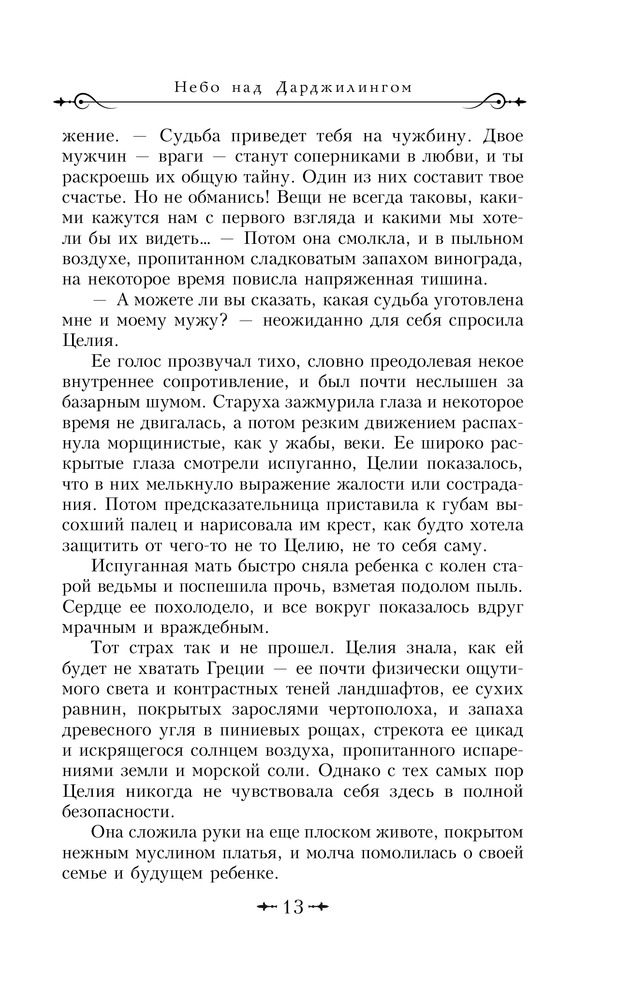 Небо над ДарджилингомВ данный момент этот товар отсутствует в продаже. Возможно, у нас найдется аналогичный или похожий товар здесь. Серия: Алые паруса. Романы Н. Фосселер Портрет, коралловые броши, бусы из венецианского стекла и смутные воспоминания о нежных прикосновениях пальцев, пахнущих лавандой и оливковым маслом, — вот все, что осталось мисс Хелене Лоуренс от матери. Тягу к странствиям и жажду жизни она унаследовала у отца. А еще массу долгов и ни единого пенни. С таким багажом сироте очень легко пуститься в авантюру и отправиться на край света. Или на чайную плантацию в Индию с таинственным мистером Невиллом, который сделал Хелене заманчивое предложение… |