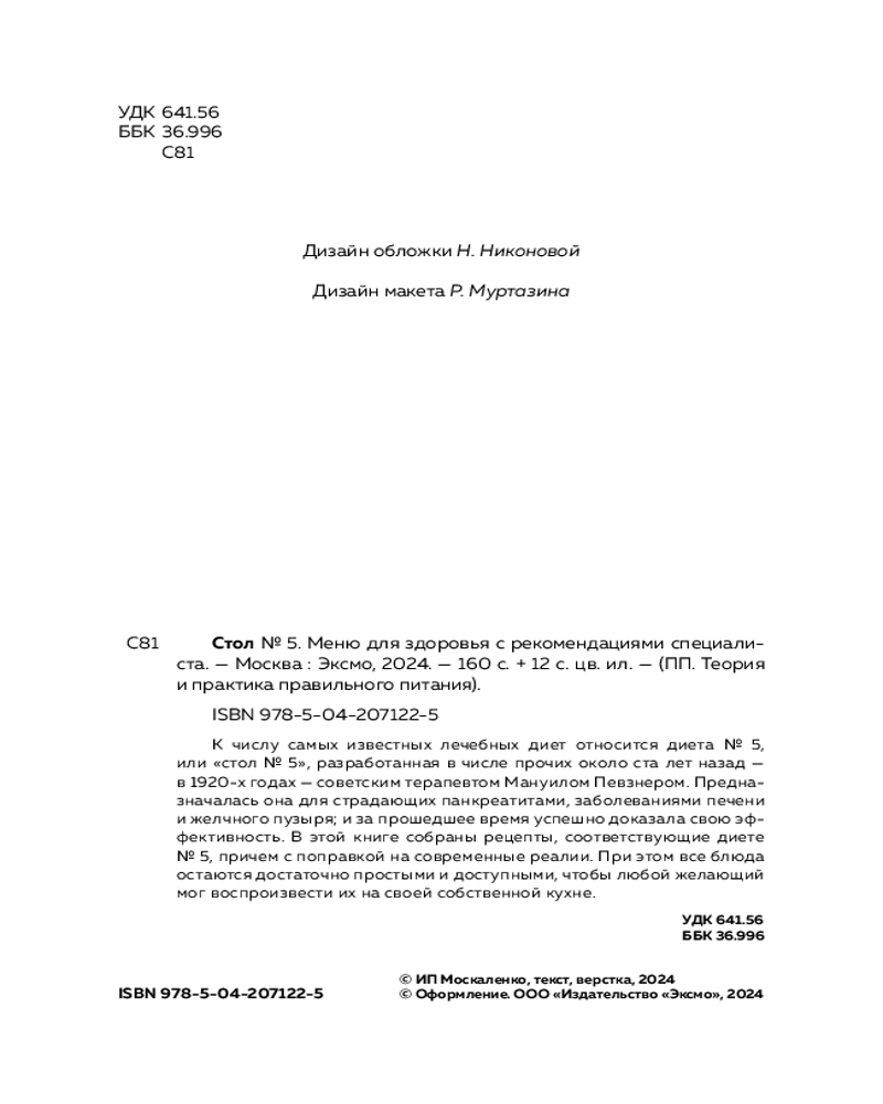 💳 Оплатить за товар можно при получении 🇰🇿 Есть бесплатная доставка по Казахстану от 1 дня 🎁 Копите бонусы с каждой покупки Серия: ПП. Теория и практика правильного питания К числу самых известных лечебных диет относится диета № 5, или «стол № 5», разработанная в числе прочих около ста лет назад — в 1920-х годах — советским терапевтом Мануилом Певзнером. Предназначалась она для страдающих панкреатитами, заболеваниями печени и желчного пузыря; и за прошедшее время успешно доказала свою эффективность. В этой книге собраны рецепты, соответствующие диете № 5, причем с поправкой на современные реалии. При этом все блюда остаются достаточно простыми и доступными, чтобы любой желающий мог воспроизвести их на своей собственной кухне. |