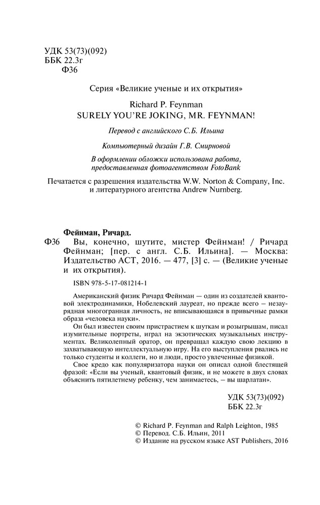 Веселые истории из жизни нетривиального Ричарда Фейнмана. Легкое чтиво с познавательными моментами. Рекомендую