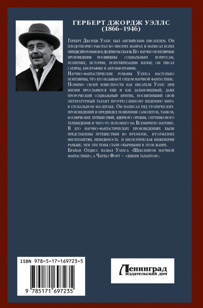 💳 Оплатить за товар можно при получении 🇰🇿 Есть бесплатная доставка по Казахстану 🎁 Копите бонусы с каждой покупки Серия: Большая библиотека приключений. Новое оформление Всемирную известность английский писатель Герберт Уэллс завоевал научно-фантастическими романами и рассказами, став одним из осново- положников жанра фантастики. В свое время его творчество поразило воображение современников и до сих пор продолжает восхищать новые поколения читателей. Удивительно, но многое, о чем Уэллс писал более ста лет назад, ста- ло реальностью. Современные исследователи его творчества утверждают, что прогнозы фантаста сбылись почти на восемьдесят процентов. Одна- ко для Уэллса важны не столько сами технические новшества, сколько их влияние на общество. Он стал одним из первых, кто смог предвидеть социальные изменения будущего: глобализацию, технократическую рево- люцию, бум развития информационных технологий, а также последствия этих явлений. |