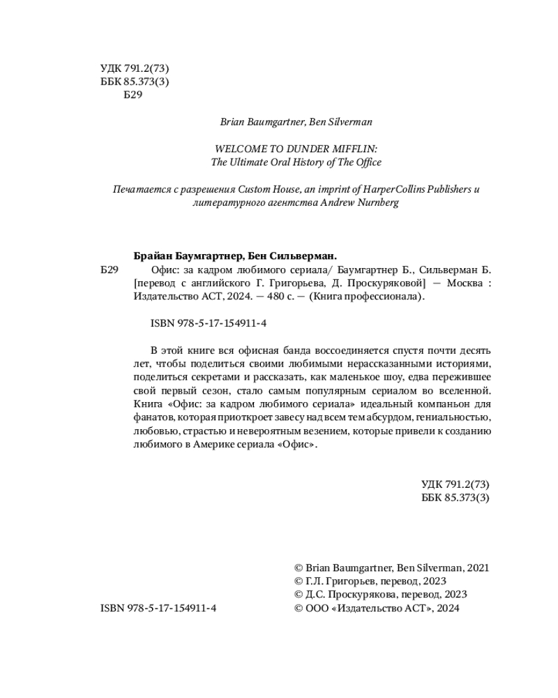 💳 Оплатить за товар можно при получении 🇰🇿 Есть бесплатная доставка по Казахстану от 1 дня 🎁 Копите бонусы с каждой покупки Серия: Книга профессионала В этой книге вся офисная банда воссоединяется спустя почти десять лет, чтобы поделиться своими любимыми нерассказанными историями, поделиться секретами и рассказать, как маленькое шоу, едва пережившее свой первый сезон, стало самым популярным сериалом во вселенной. Книга «Офис: за кадром любимого сериала» идеальный компаньон для фанатов, которая приоткроет завесу над всем тем абсурдом, гениальностью, любовью, страстью и невероятным везением, которые привели к созданию любимого в Америке сериала «Офис». |