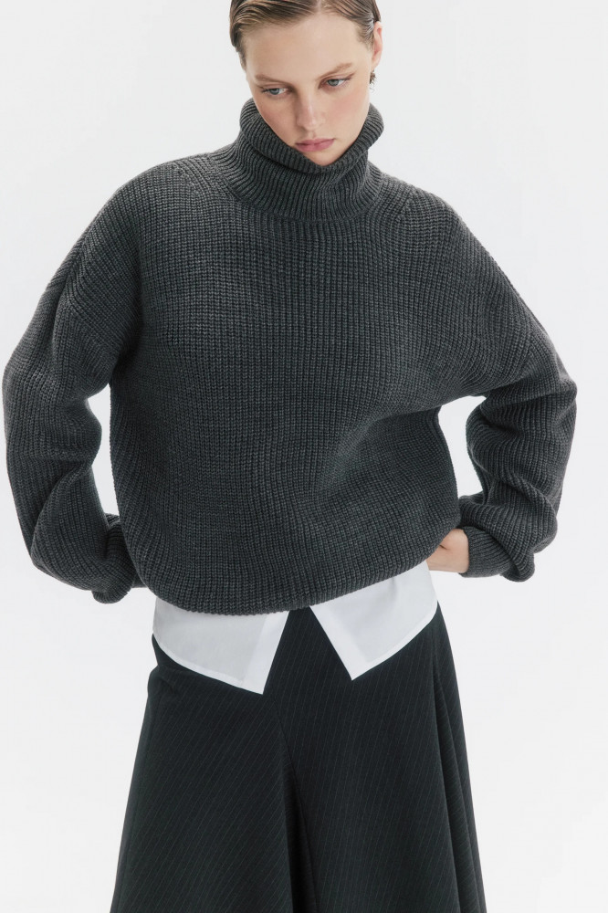 Женский вязаный свитер свободного кроя из мягкой, теплой, приятной к телу пряжи толстой вязки с фактурой в крупный рубчик. Круглый вырез горловины с высоким воротником-гольфом. Длинные свободные рукава с присборенными манжетами и спущенной линией плеча. Присборенный нижний край в рубчик. Разнообразные однотонные расцветки в базовых и ярких оттенках для любого образа и настроения. Суперудобный и теплый вязаный свитер с горлом для самых уютных и стильных повседневных луков на холодную осень, весну и зиму. Короткий вязаный джемпер с горлом идеально подойдет для школы, университета, офиса и просто на каждый день. Сочетай его с длинными вязаными или джинсовыми юбками, с расслабленными широкими джинсами или короткими твидовыми шортами и создавай самые комфортные повседневные луки, в которых ты гарантированно не замерзнешь.