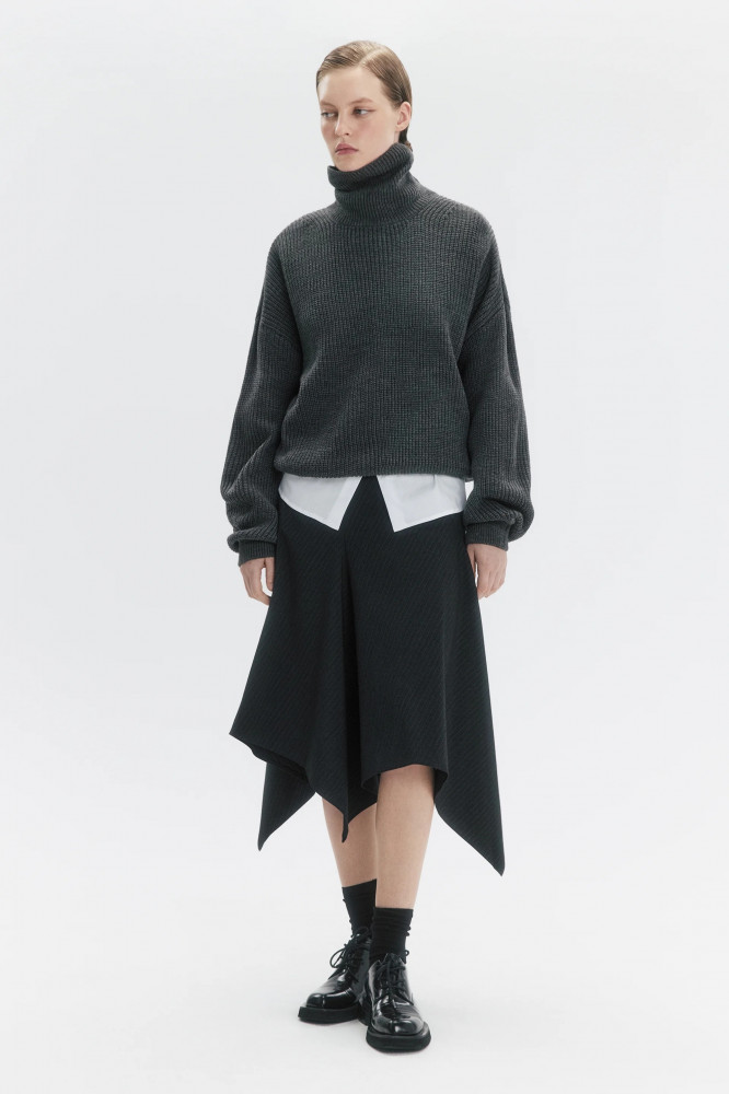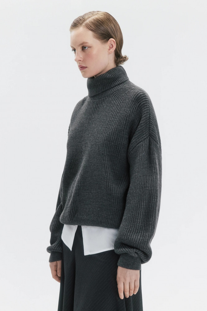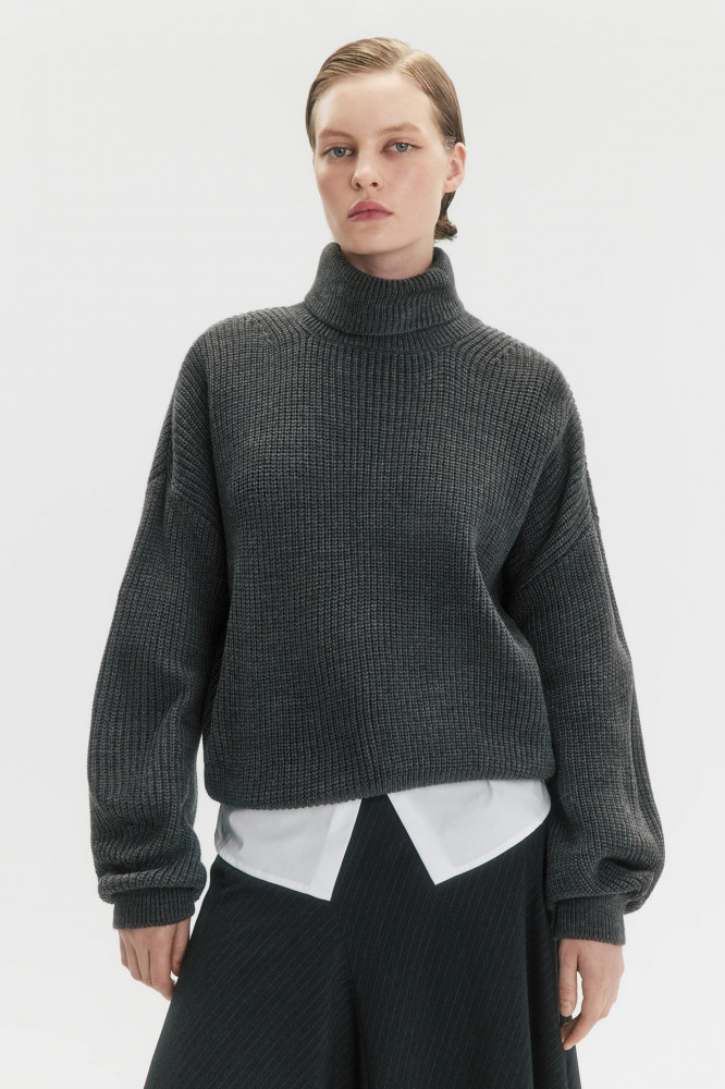 Женский вязаный свитер свободного кроя из мягкой, теплой, приятной к телу пряжи толстой вязки с фактурой в крупный рубчик. Круглый вырез горловины с высоким воротником-гольфом. Длинные свободные рукава с присборенными манжетами и спущенной линией плеча. Присборенный нижний край в рубчик. Разнообразные однотонные расцветки в базовых и ярких оттенках для любого образа и настроения. Суперудобный и теплый вязаный свитер с горлом для самых уютных и стильных повседневных луков на холодную осень, весну и зиму. Короткий вязаный джемпер с горлом идеально подойдет для школы, университета, офиса и просто на каждый день. Сочетай его с длинными вязаными или джинсовыми юбками, с расслабленными широкими джинсами или короткими твидовыми шортами и создавай самые комфортные повседневные луки, в которых ты гарантированно не замерзнешь.