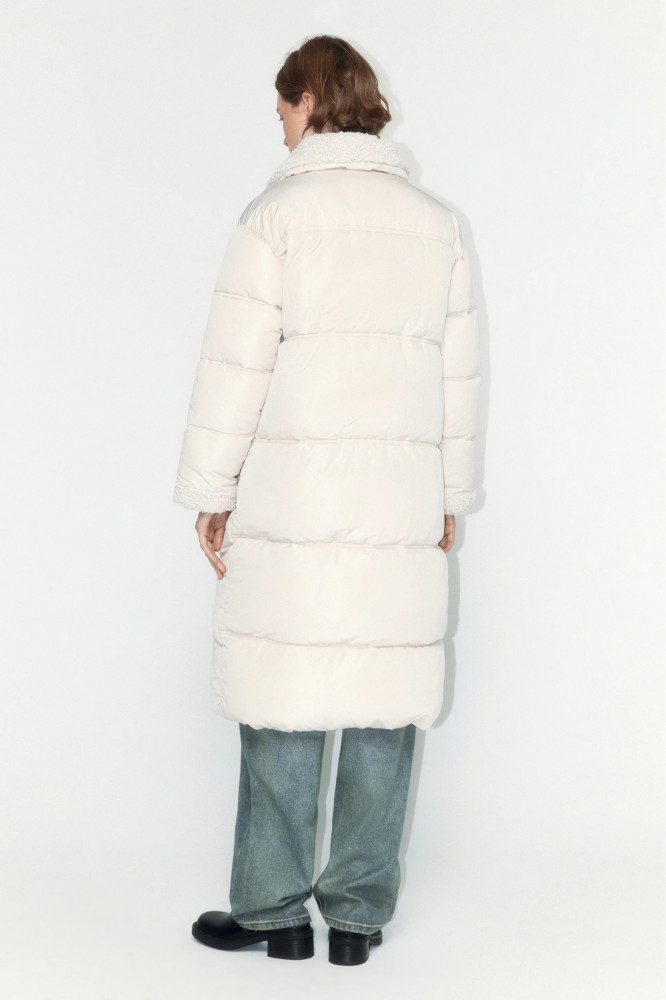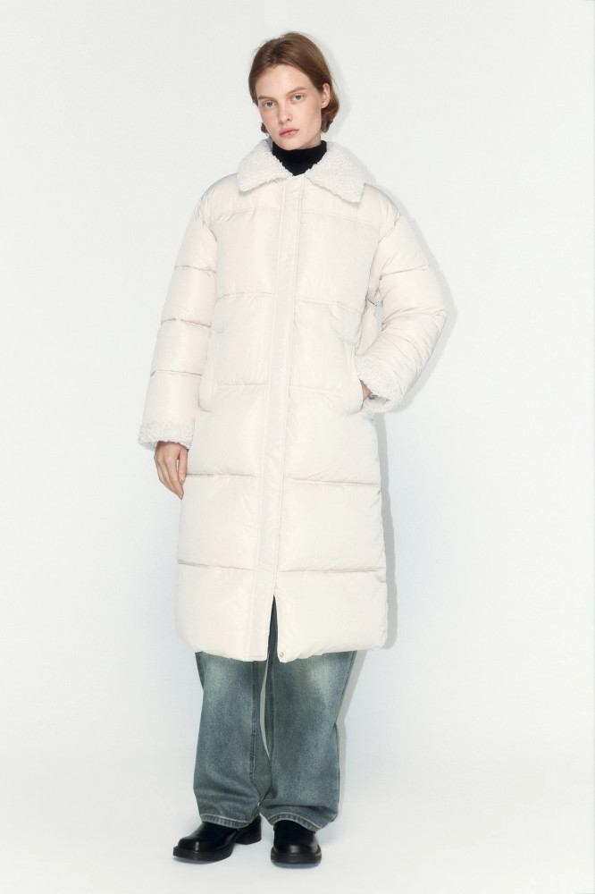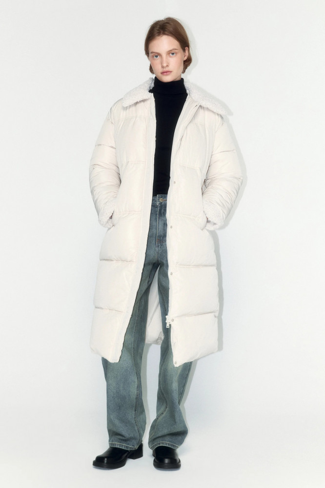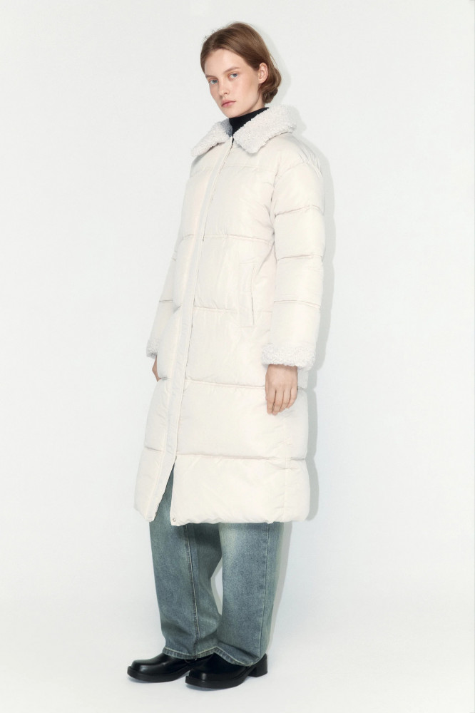 Длинная стеганая женское пальто свободного кроя с легким искусственным утеплителем (синтепух). Объемный отложной воротник с опушкой из искусственного меха. Застежка на молнию и планку на кнопках по всей длине. Длинные рукава с опушкой на манжетах и спущенной линией плеча. Два боковых прорезных кармана без застежки. Прямой нижний край без утяжек. Однотонный зимний пуховик в базовых расцветках из новой коллекции. Легкое и очень теплое стеганое пальто, которое защитит тебя от холодных ветров, снегопадов и других неожиданностей холодной погоды. Сочетай его с любимым комфортным низом и создавай стильные, теплые и уютные аутфиты на каждый день. Это пальто идеально подойдет для образов в школу, университет или офис. Заверши аутфит удобной обувью и теплыми аксессуарами из новой линейки Befree.