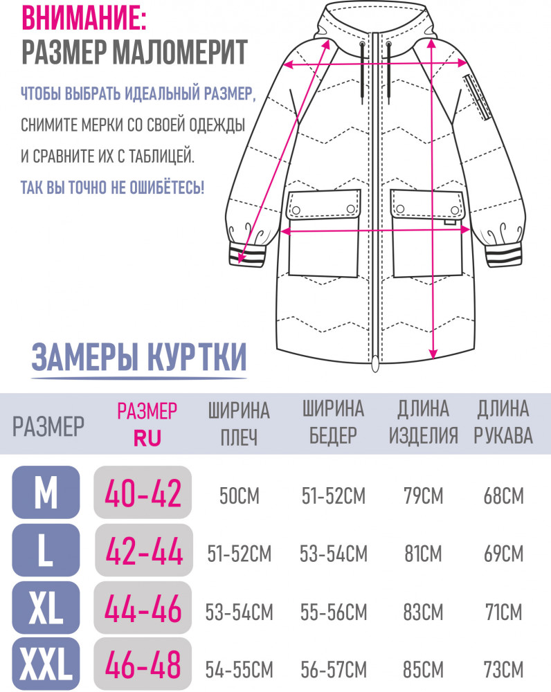 В целом хороший пуховик, размерная сетка соответствует, приемлемая цена