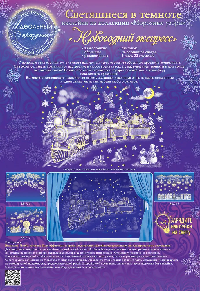 Открытая планета Набор наклеек для окон светящихся «Новогодний экспресс»В данный момент этот товар отсутствует в продаже. Возможно, у нас найдется аналогичный или похожий товар здесь. Волшебные наклейки, которые светятся в темноте — они заряжают хорошим настроением днем и дарят уют ночью! Наклейки подходят для любых гладких поверхностей (кроме бумажных обоев). Кроме того, они двусторонние — а это удачное решение для декорирования окон, витрин, стеклянных дверей. Они одинаково эффектно смотрятся и изнутри, и снаружи. Легко клеятся и легко снимаются, не оставляя следов. Влагостойкие. Перед использованием, зарядите наклейки на свету. Блестки в лаке флуоресцентные. |