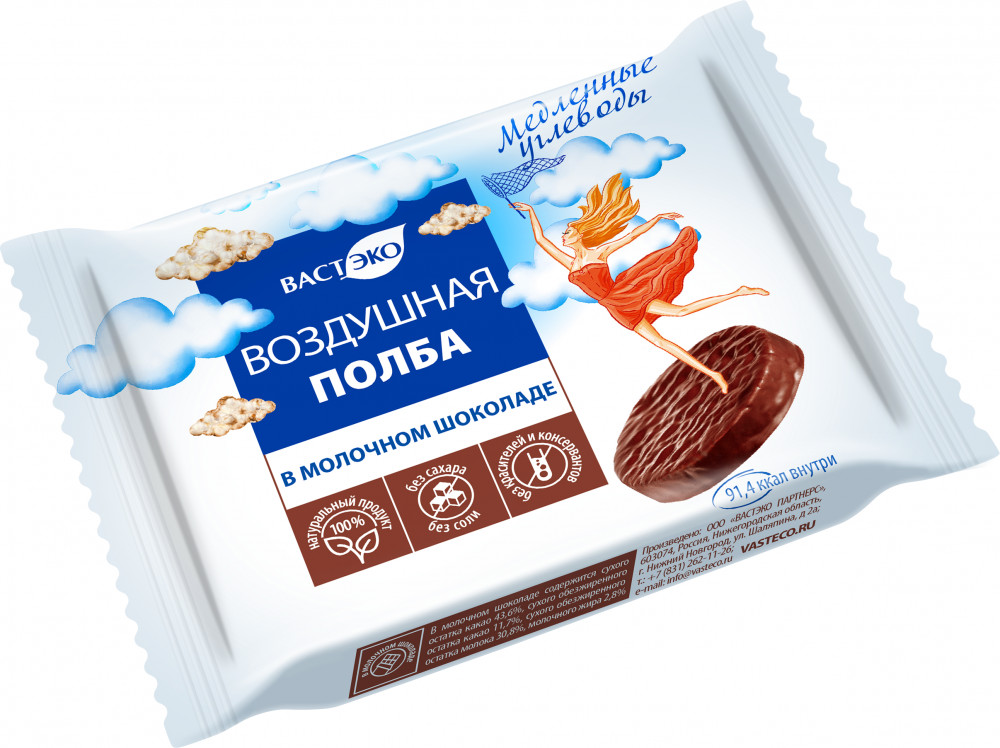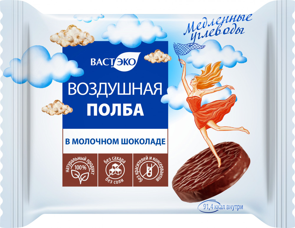 Воздушная полба в молочном шоколаде — ЗОЖ, фитнес-десерт из 100% натуральных ингредиентов без сахара для тех, кто любит полезные сладости и хочет оставаться стройным. Сочетание воздушных зерен полбы с высококачественным молочным шоколадом и экстрактом ванили позволяет создать в продукте уникальную композицию вкуса, полезности и минимума калорий! Медленные углеводы в составе воздушной полбы расщепляются в организме гораздо дольше и в течение дня постепенно расходуются на активную физическую деятельность. Польза медленных углеводов еще и в том, что они не увеличивают уровень сахара в крови, что делает их сбалансированным и сытным перекусом для всех, кто предпочитает здоровый образ жизни, а также для спортсменов и профессионалов, которым важно контролировать свой вес. Фитнес-десерт воздушная полба в молочном шоколаде эффективно борется с признаками энергетического истощения, нехваткой сил, заряжает бодростью!