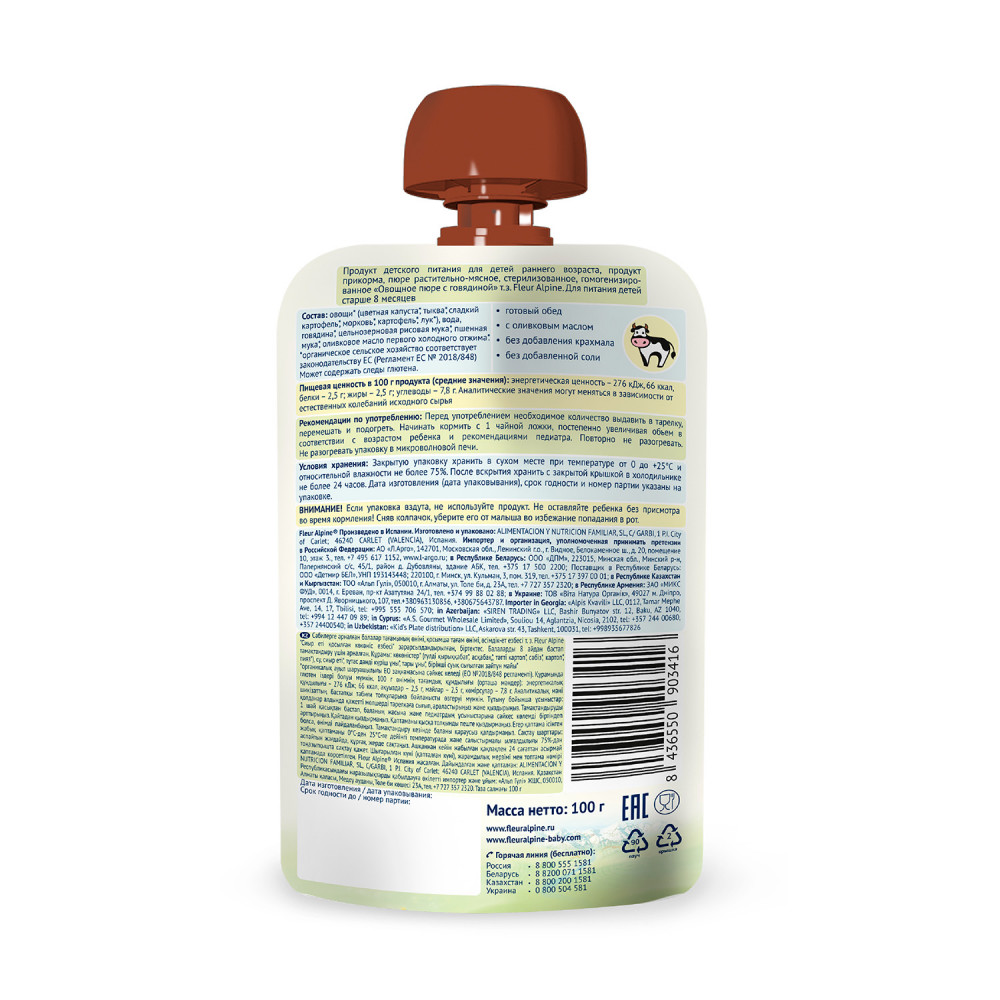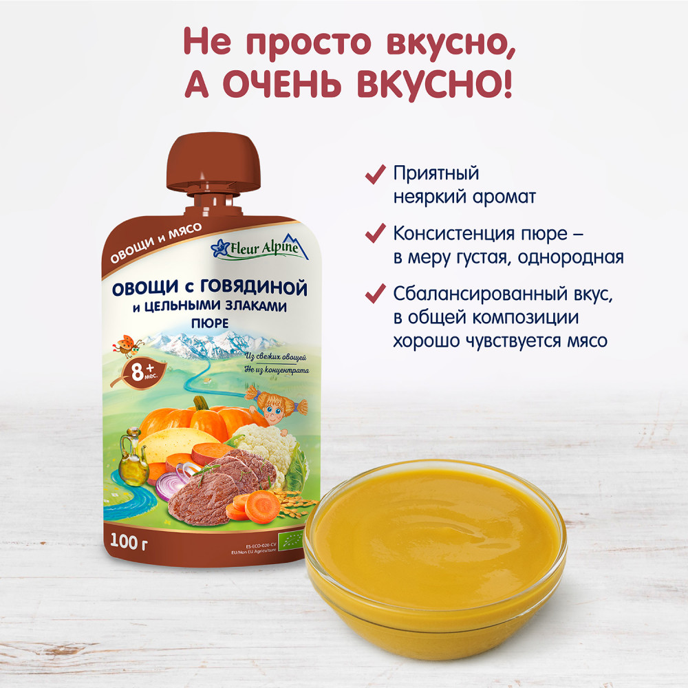 Fleur Alpine Пюре «Овощи с говядиной и цельными злаками»