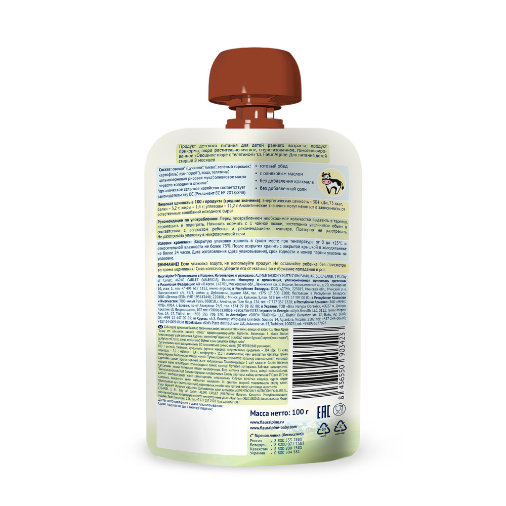 Fleur Alpine Пюре «Овощи с телятиной и цельными злаками»
