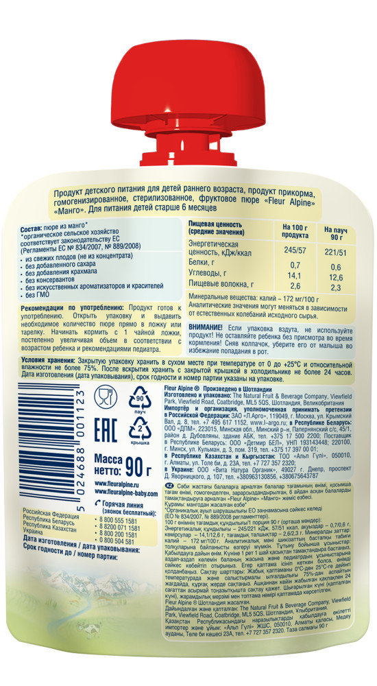 💳 Оплатить за товар можно при получении 🇰🇿 Есть бесплатная доставка по Казахстану от 1 дня 🎁 Копите бонусы с каждой покупки Пюре Fleur Alpine МАНГО дополняет рацион малыша новым экзотическим фруктом. В его вкусе и аромате вы почувствуете только спелое, согретое солнцем манго. Пюре имеет однородную, очень нежную консистенцию. Упаковку-пауч удобно брать с собой на прогулку или в поездку. |