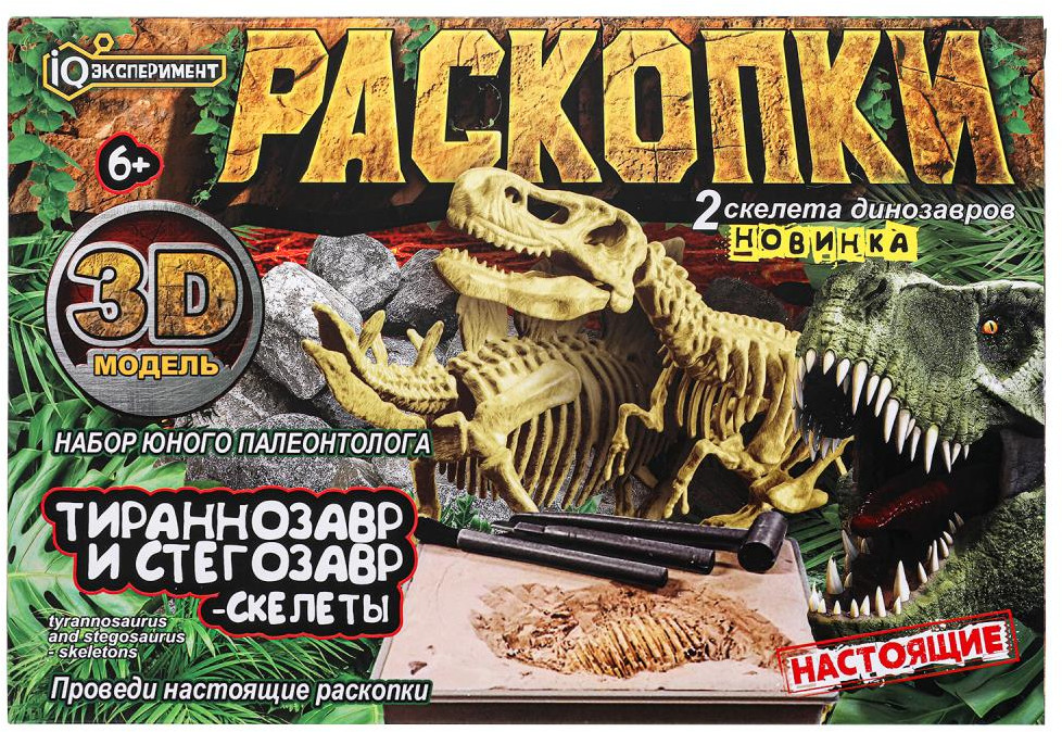 IQ Эксперимент Набор игровой «Настоящие раскопки. Тираннозавр и стегозавр»-35% +69