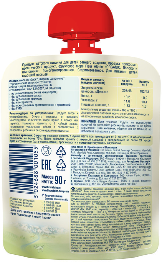 💳 Оплатить за товар можно при получении 🇰🇿 Есть бесплатная доставка по Казахстану от 1 дня 🎁 Копите бонусы с каждой покупки Пюре Fleur Alpine яблоко и шиповник подходит для первого фруктового прикорма. Сочное сладкое яблоко гармонично дополняет легкая кислинка шиповника. Во вкусе пюре ощущаются все ингредиенты. Нежный фруктовый аромат и оптимальная, в меру густая консистенция вызывают аппетит. Упаковку-пауч удобно брать с собой на прогулку или в поездку. |