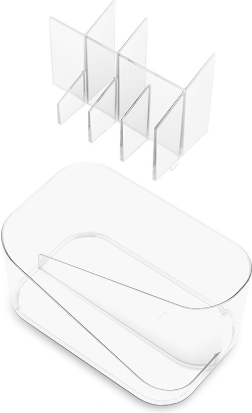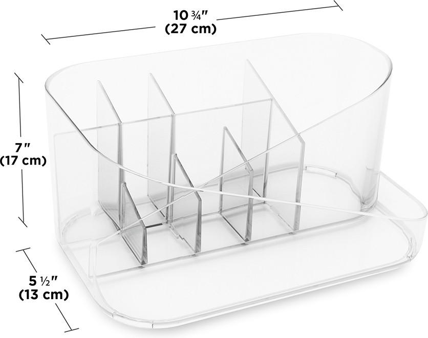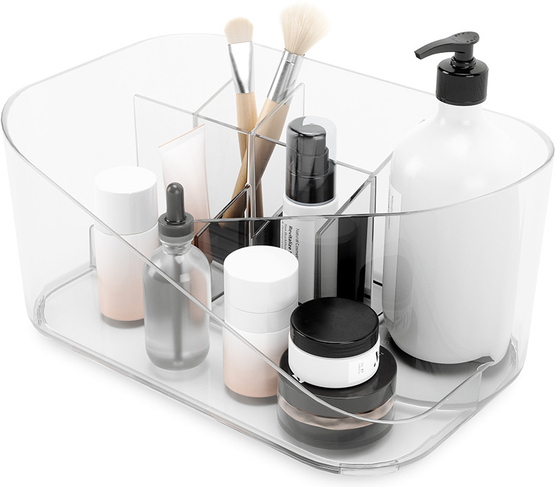 Umbra Органайзер для косметики «Glam»В данный момент этот товар отсутствует в продаже. Возможно, у нас найдется аналогичный или похожий товар здесь. В органайзере Glam можно хранить все необходимое для повседневного макияжа благодаря отделениям разного размера и съемной вставке. Легкий, компактный и удобный в использовании, он обеспечивает быстрый доступ к необходимым средствам, не занимает много места в ванной и на туалетном столике. |