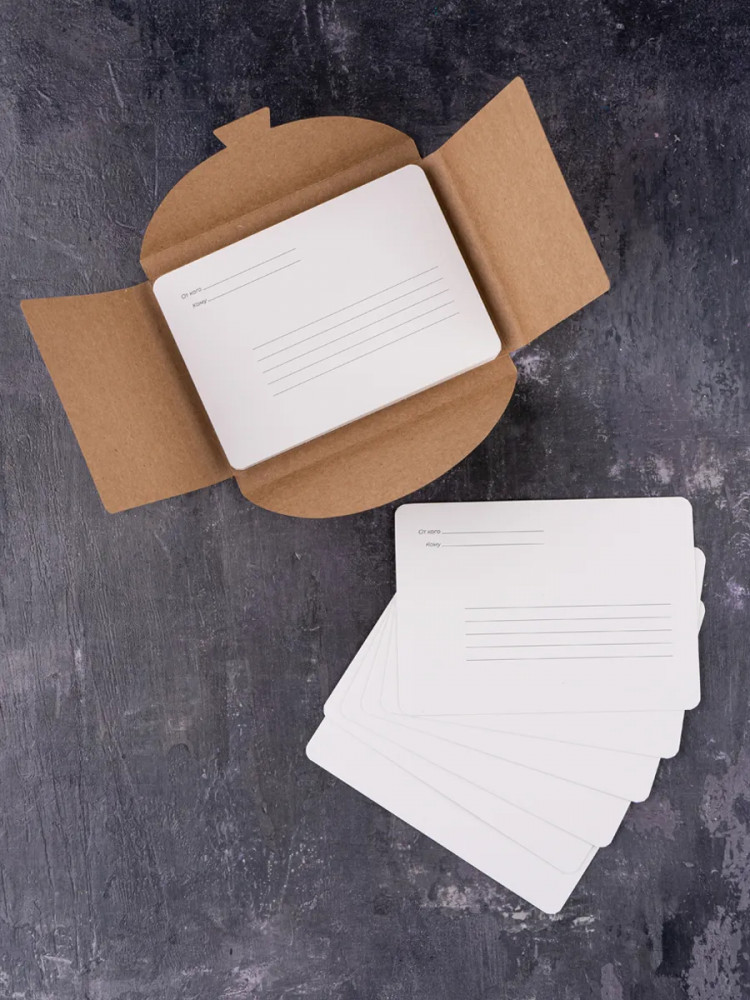 💳 Оплатить за товар можно при получении 🇰🇿 Есть бесплатная доставка по Казахстану от 1 дня 🎁 Копите бонусы с каждой покупки Новый формат хлопковой бумаги — открытки А6 для любителей миниатюр и посткроссинга. Набор из 20 открыток с разметкой на обороте упакован в крафтовую коробку. |