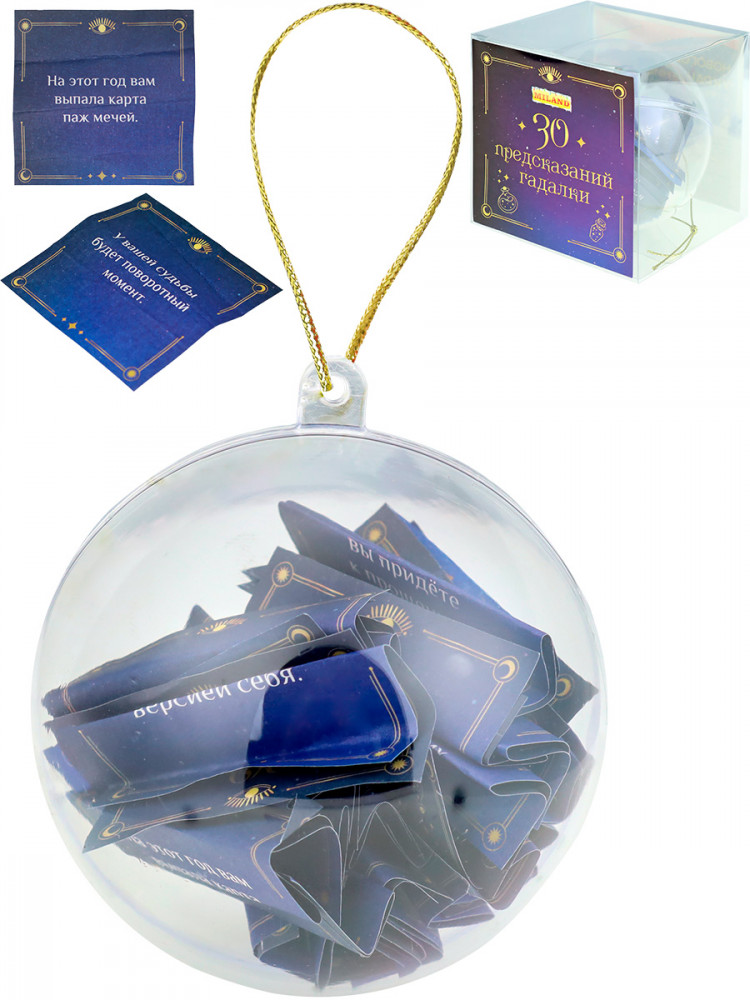 Миленд Шар со свитками-предсказаниями «30 предсказаний гадалки»В данный момент этот товар отсутствует в продаже. Возможно, у нас найдется аналогичный или похожий товар здесь. Элегантный елочный шар со свитками-предсказаниями — идеальное дополнение к вашему праздничному интерьеру. На каждом свитке внутри шара находится предсказание, которое добавит загадочности и долю волшебства вашему новогоднему вечеру. Раскройте каждый свиток и размышляйте о том, какие стихии судьбы подготовили вам на следующий год. Шар со свитками-предсказаниями является прекрасным подарком для семьи и друзей. Он создает атмосферу ожидания и таинственности, добавляя приятного волнения к общему новогоднему настроению. |