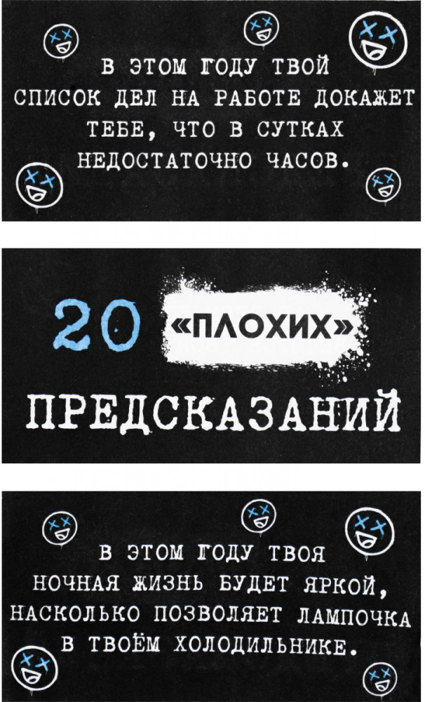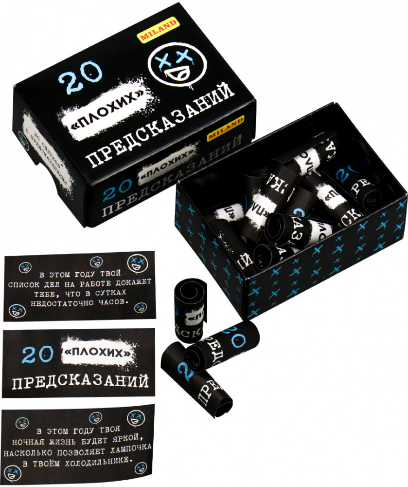 Миленд Коробочка с предсказаниями «20 плохих предсказаний»В данный момент этот товар отсутствует в продаже. Возможно, у нас найдется аналогичный или похожий товар здесь. Коробочка с предсказаниями — это загадочный и увлекательный товар, который принесет в вашу жизнь забаву и интригу. Каждая коробочка содержит набор красочных карточек с различными предсказаниями, которые могут иметь отношение к вашему будущему, личным отношениям, карьере или другим сферам жизни. Вам достаточно просто вытянуть одну карточку из коробочки, чтобы узнать, какие тайны и события судьба приготовила для вас. Этот товар станет отличным подарком для любителей загадок, тайн и всеобщего интереса к будущему. Откройте коробочку с предсказаниями и погрузитесь в мир неизведанного! |