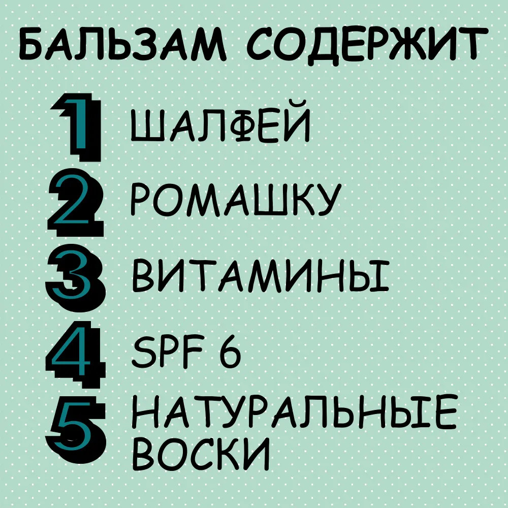Ricinus communis oil, C12-15 alkyl benzoate, paraffinum liquidum, ceresin, cera alba, olea europaea oil, cera carnauba, dicaprylyl ether, ethylhexyl methoxycinnamate, myristyl lactate, chamomilla recutita extract, hippophae rhamnoides oil, propolis, calendula officinalis extract, salvia officinalis oil, melaleuca alternifolia oil, BHA, tocopheryl acetate, phenoxyethanol, ethylhexylglycerin.