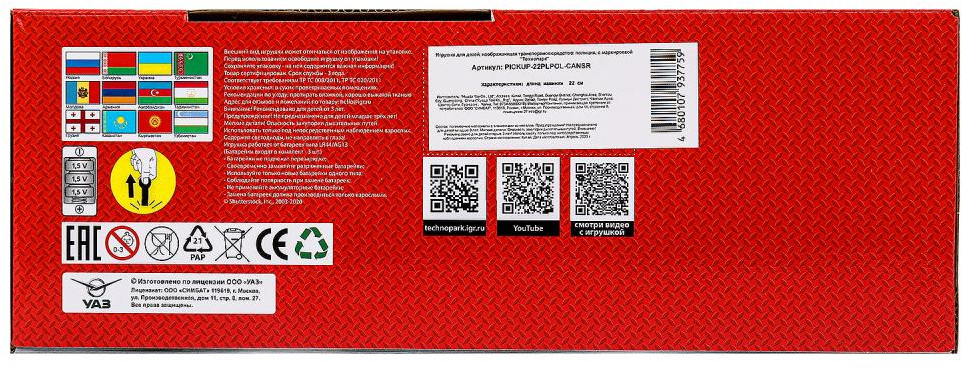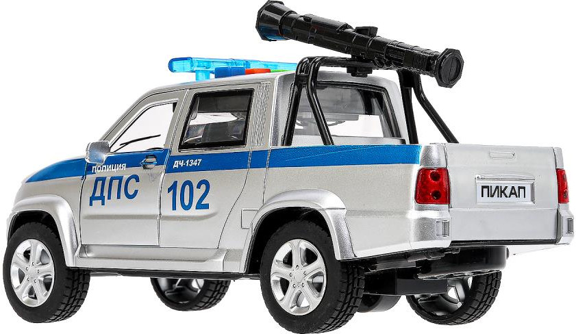 💳 Оплатить за товар можно при получении 🇰🇿 Есть бесплатная доставка по Казахстану 🎁 Копите бонусы с каждой покупки Пластиковая модель «UAZ Pickup. Полиция» ТМ «Технопарк» — прекрасный подарок для юного автолюбителя: |