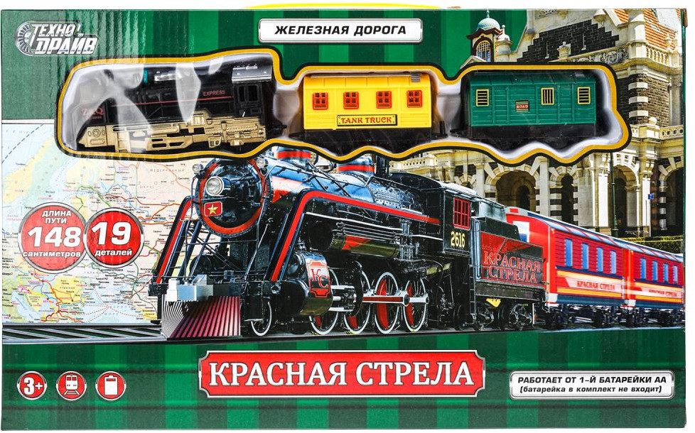 Технодрайв Железная дорога «Красная стрела»В данный момент этот товар отсутствует в продаже. Возможно, у нас найдется аналогичный или похожий товар здесь. Железная дорога «Красная стрела» ТМ «Играем вместе» порадует своего владельца реалистичным дизайном и функциональностью: |