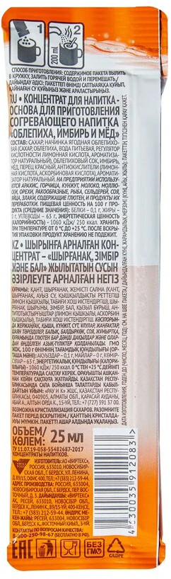 Гурмикс Напиток согревающий «Облепиха, имбирь и мед»