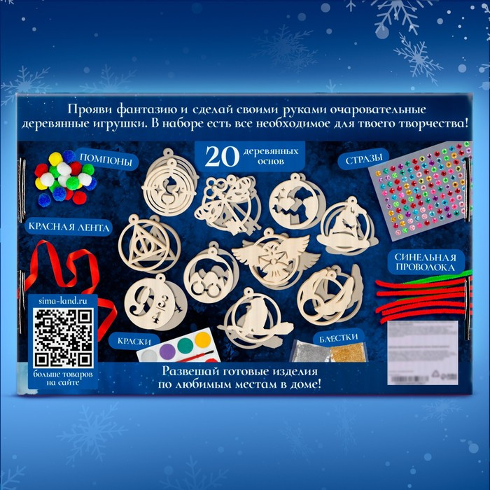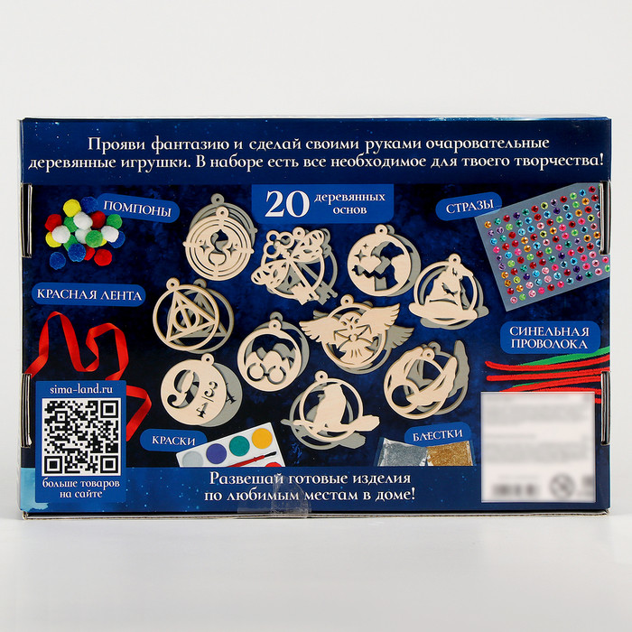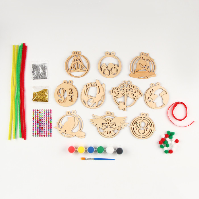 Новогодний набор для создания ёлочных украшений поможет провести время весело и с пользой. Раскрашивайте и украшайте деревянные основы на свой вкус и вас получатся неповторимые поделки для создания праздничной атмосферы.