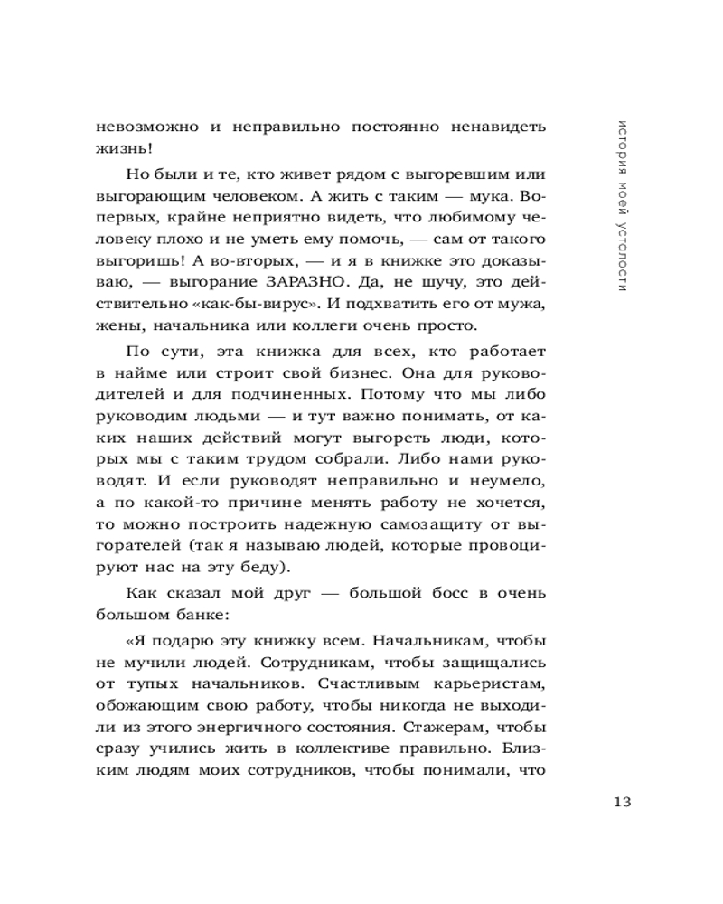 💳 Оплатить за товар можно при получении 🇰🇿 Есть бесплатная доставка по Казахстану от 1 дня 🎁 Копите бонусы с каждой покупки Серия: Лаборатория жизни Алены Владимирской Мысли о работе убивают? Ответ на сообщение в рабочем чате отнимает последние силы? По утрам появляется миллион дел: от сидения с носком в руке по 20 минут до еще одной чашки кофе — лишь бы не идти на работу? Вам кажется, что выхода нет, но он — есть. Его нашла известный хедхантер, рекрутер и карьерный консультант Алена Владимирская, когда сама оказалась в выгорании. Она разработала методику, которая спасла не только ее саму, но и несколько сотен «уставших» топ-менеджеров. Когда никакие западные советы от «установите границы» до «не перерабатывайте» не помогают, методика Владимирской работает! |