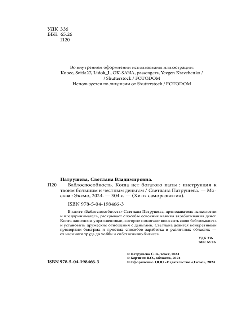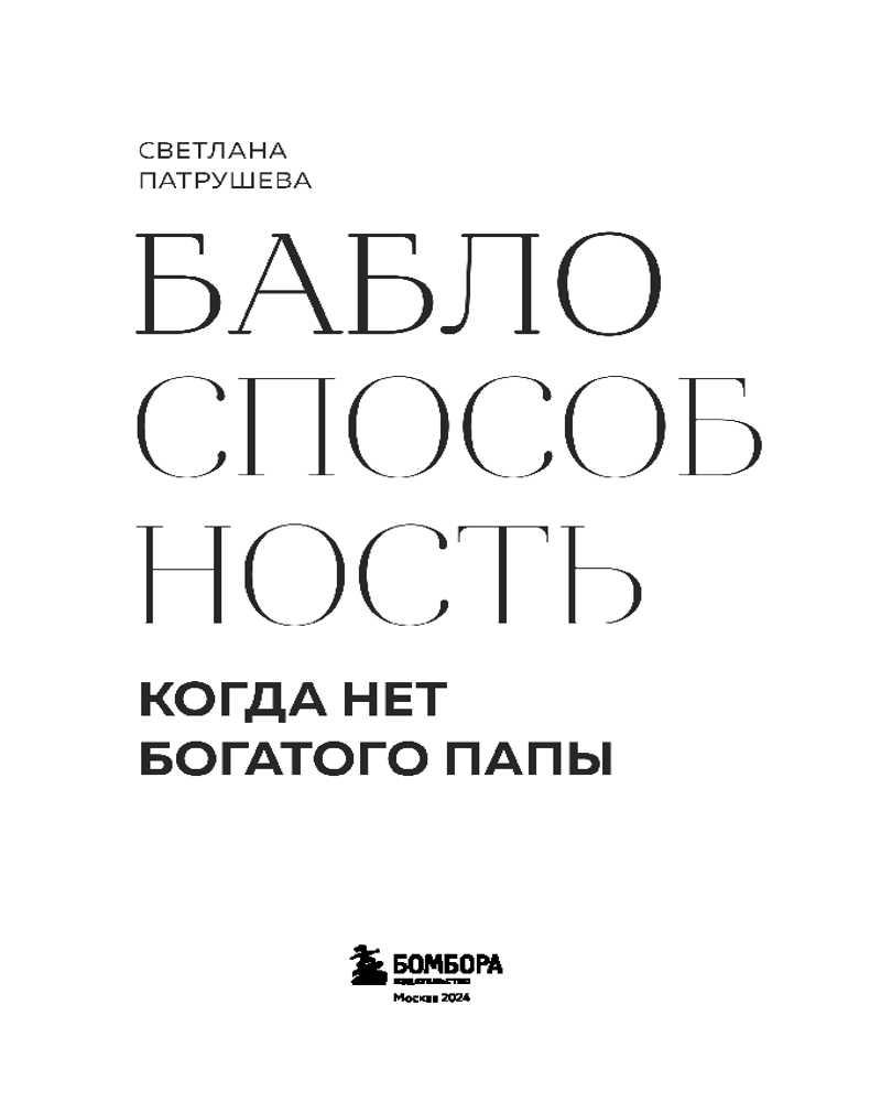 Баблоспособность. Когда нет богатого папы. Инструкция к твоим большим и честным деньгамСветлана Владимировна Патрушева -30% +55